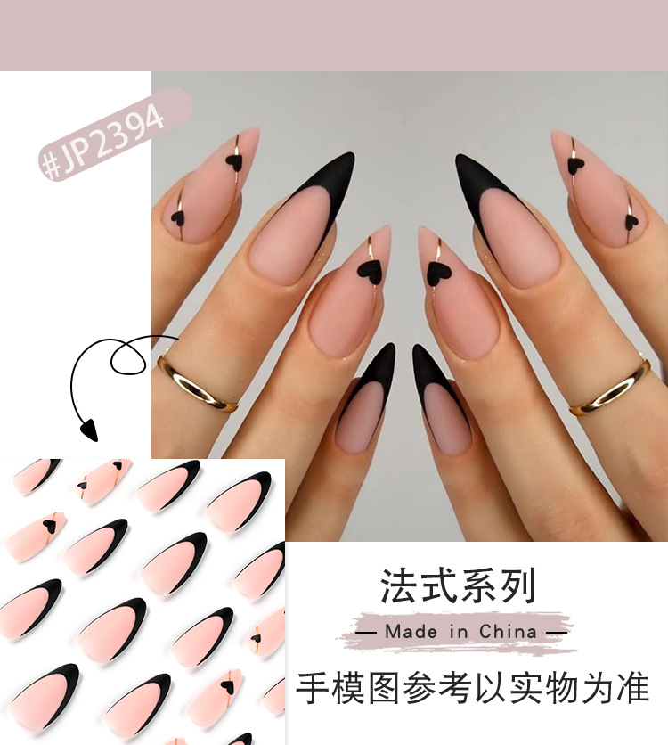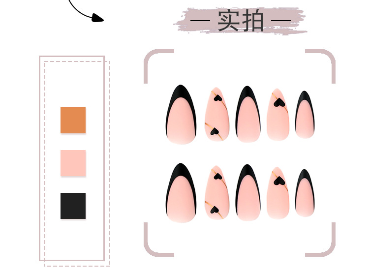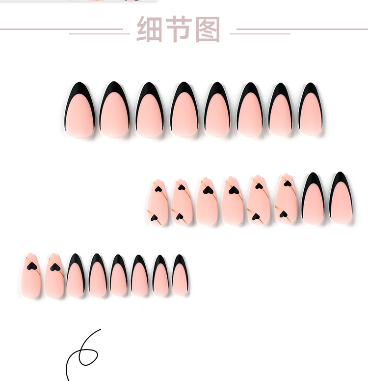 Desgaste pieza de uñas esmerilado negro francés amor oro hilo desgaste de uñas dulce fresco pieza de uñas acabado desmontable Avanzada