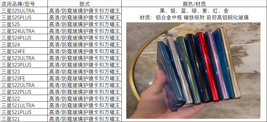 Funda para teléfono Samsung s25u Magneto 24FE aplicable a ventas internacionales, con cristal de privacidad, hebilla magnética de metal y protección anticaídas.