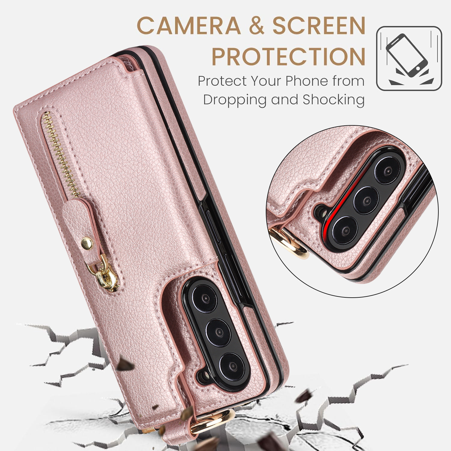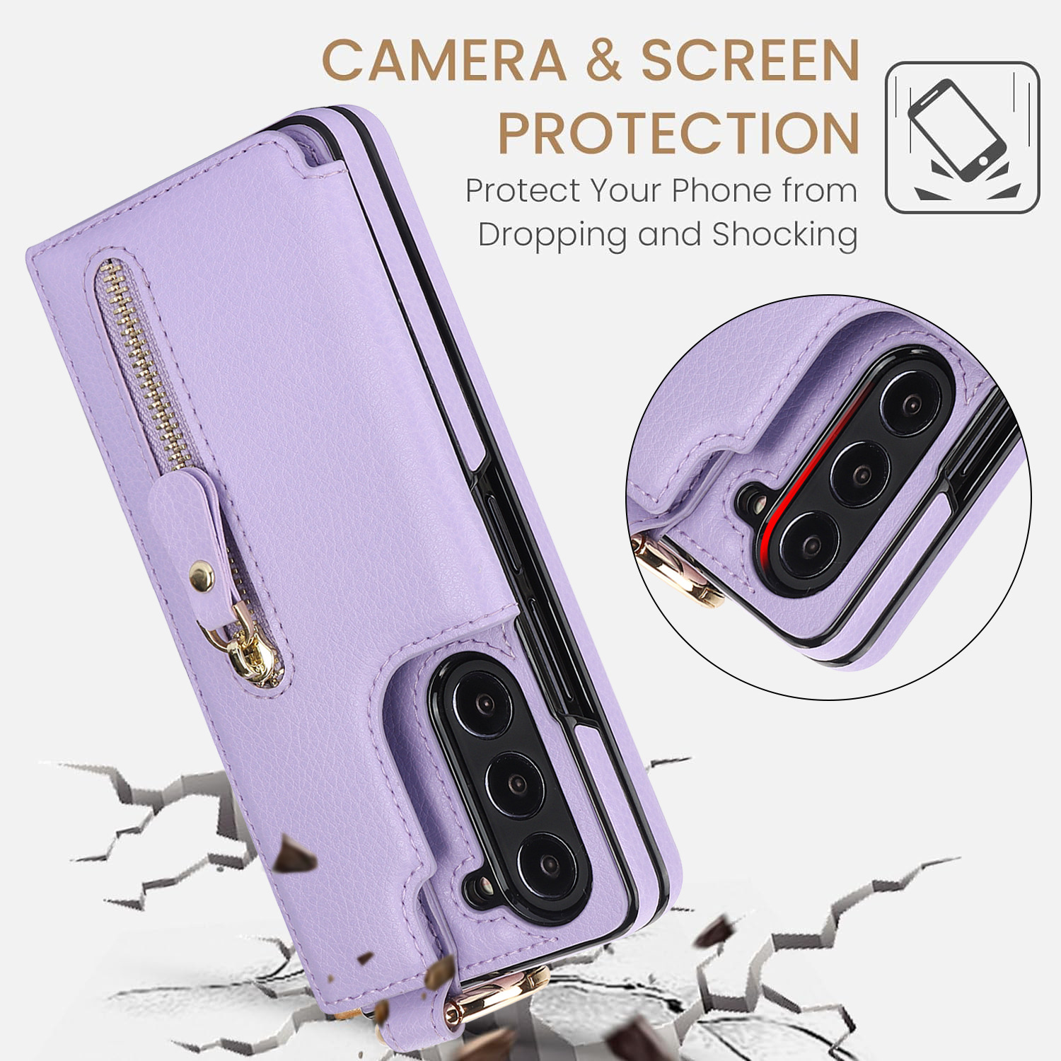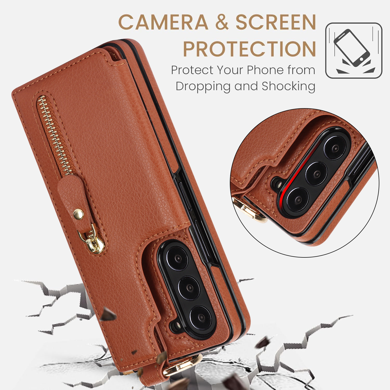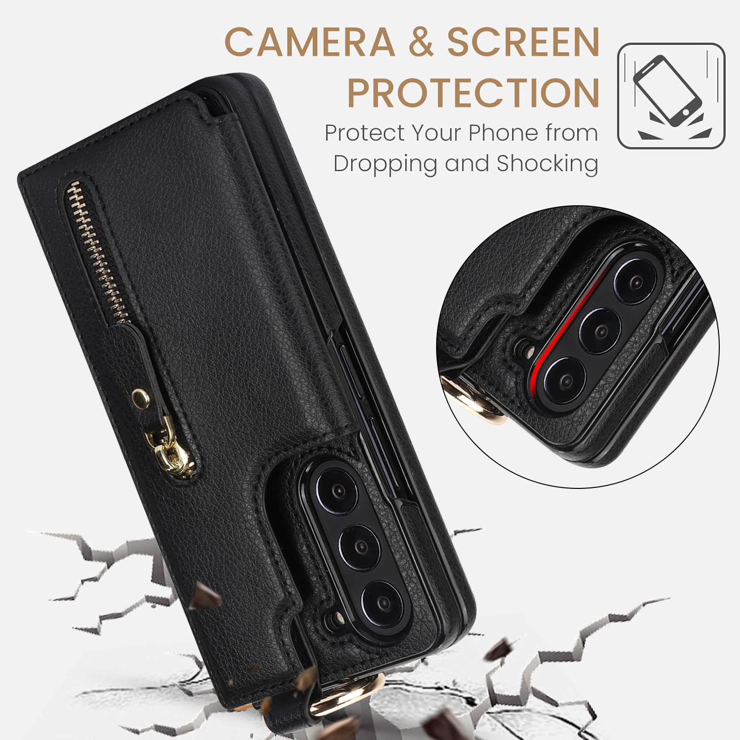 Funda para teléfono plegable Samsung Z Fold7, funda de cuero con cremallera para Fold6, funda protectora con anillo y tarjetero