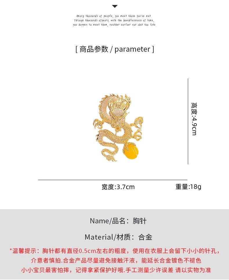 Golden Dragon Play Ball Hombre 2024 Año del dragón Regalo del año del dragón Broche del dragón Traje de gama alta para mujer Accesorios Pin Decoración de estilo chino