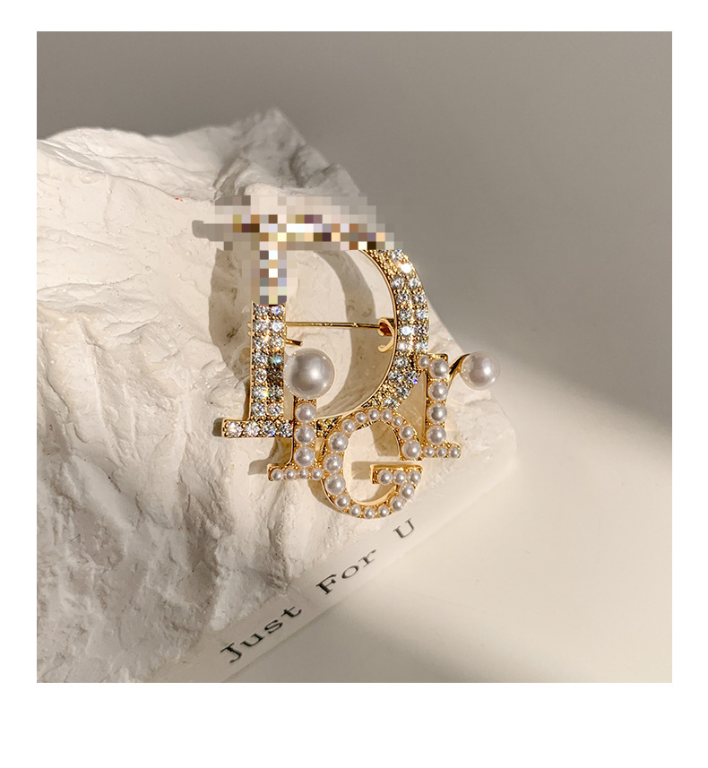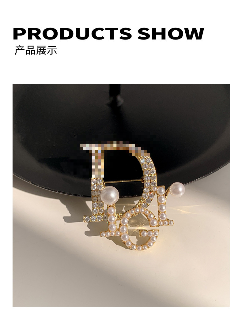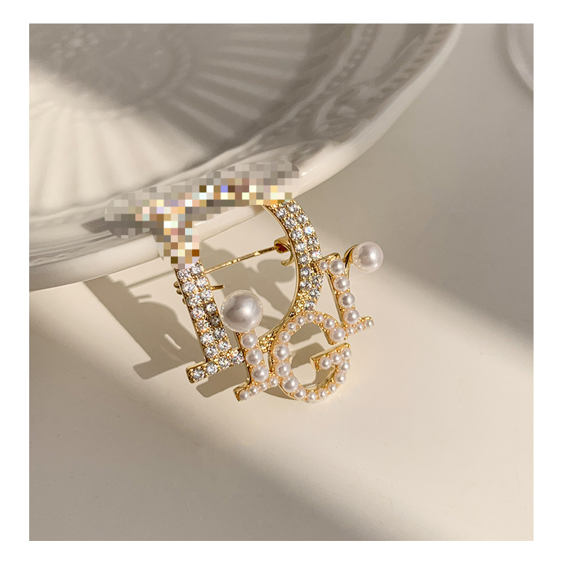 Nuevo estilo de Chanel broche de la letra de gama alta de las mujeres elegantes perla ramillete exquisito anti-exposición pin traje Accesorios
