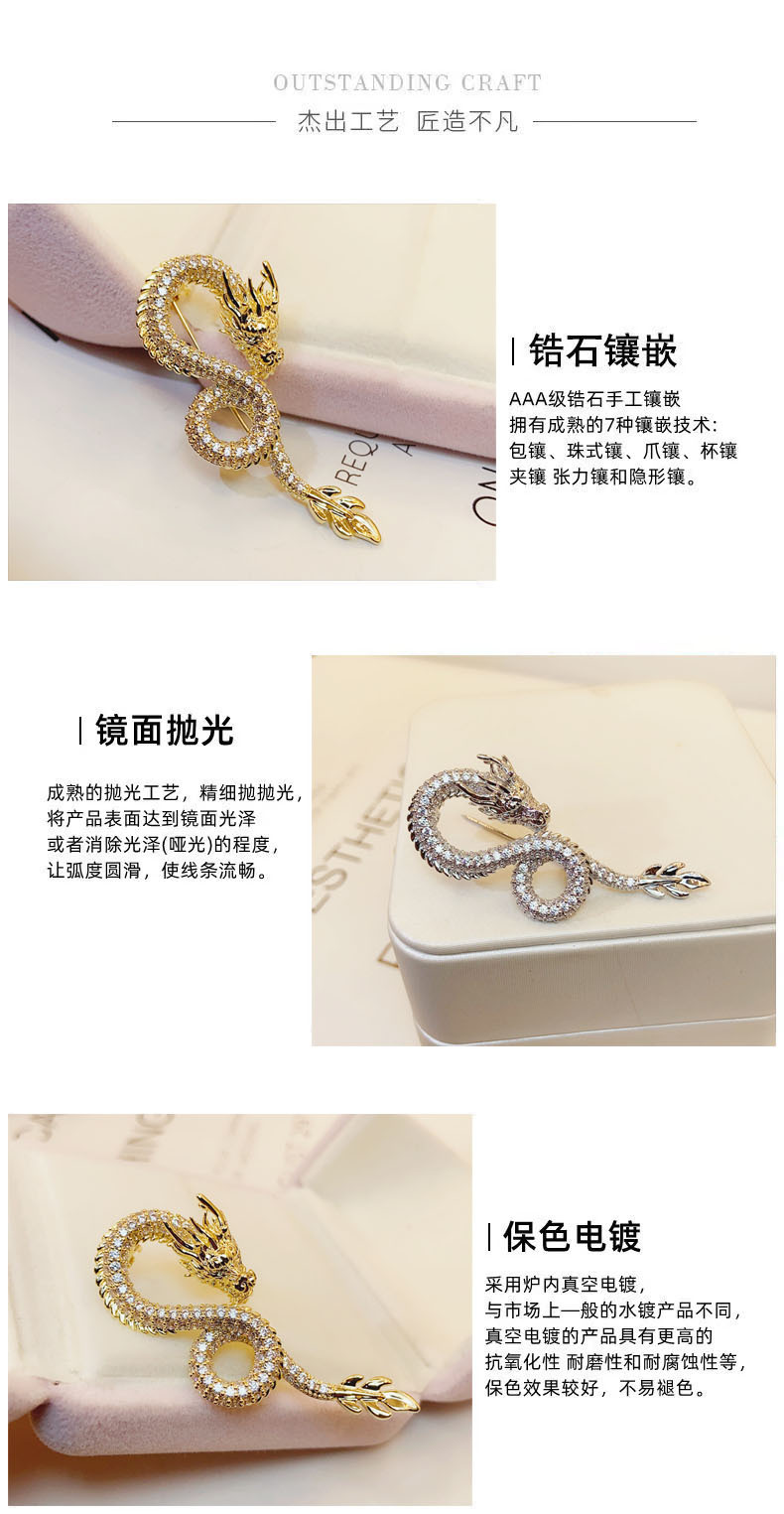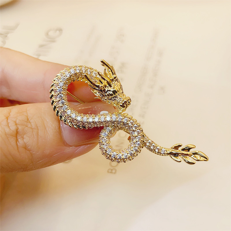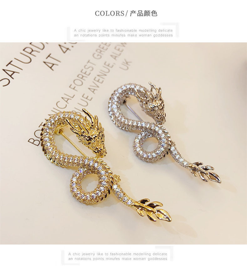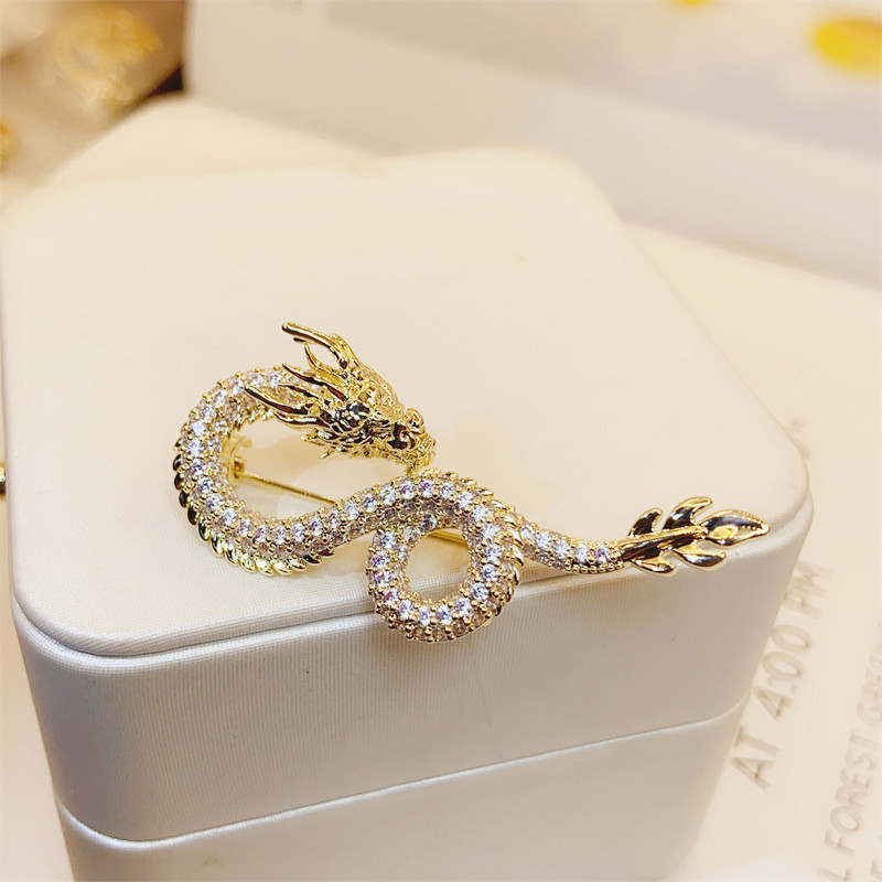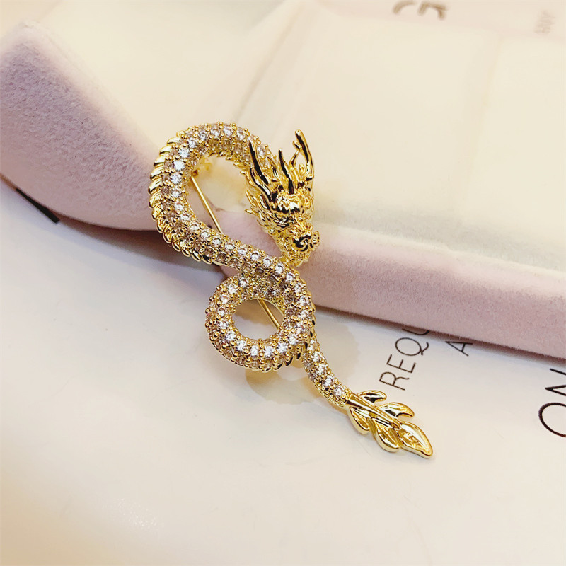 Nuevo deseo dragón broche femenino de alta gama traje creativo Dragón en forma de ramillete accesorios pin dragón año Zodiaco joyería