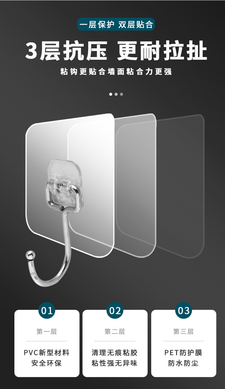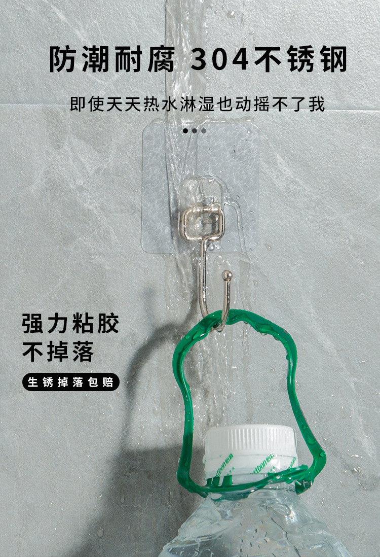 Fábrica de perforación libre gancho fuerte adhesivo colgante de pared transparente hogar transparente de carga adhesiva de cocina