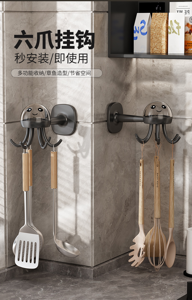 Multi-funcional cocina hogar Punch-free gancho segunda instalación Toalla baño almacenamiento pulpo seis-garra gancho al por mayor
