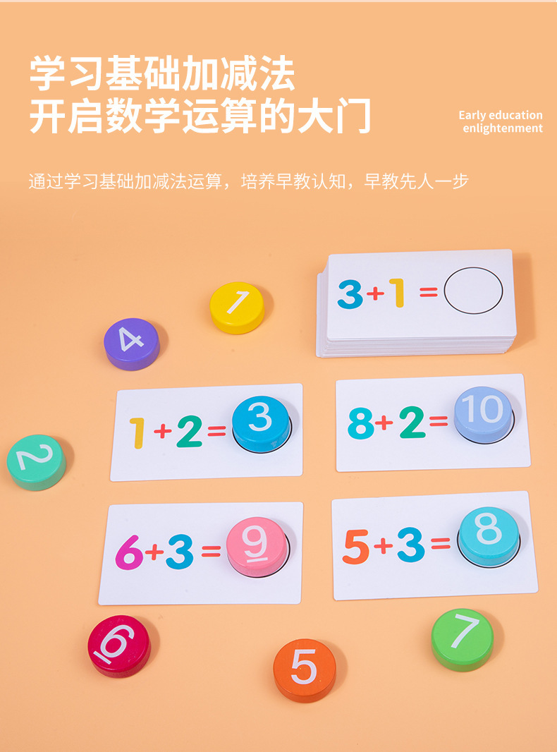 Aprendizaje de matemáticas de madera Montessori para niños material didáctico tablero digital coincidencia cognitiva matemáticas suma y resta operación rompecabezas de aprendizaje educación temprana