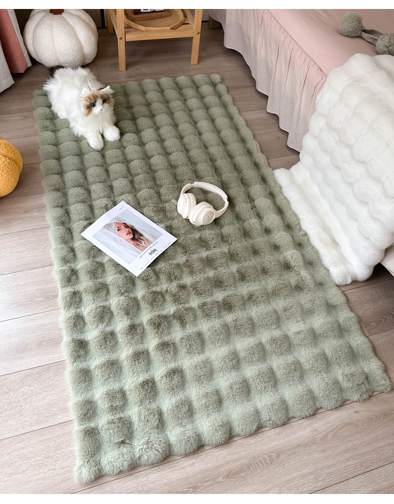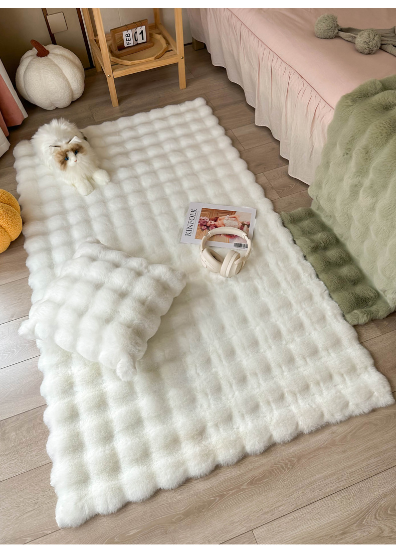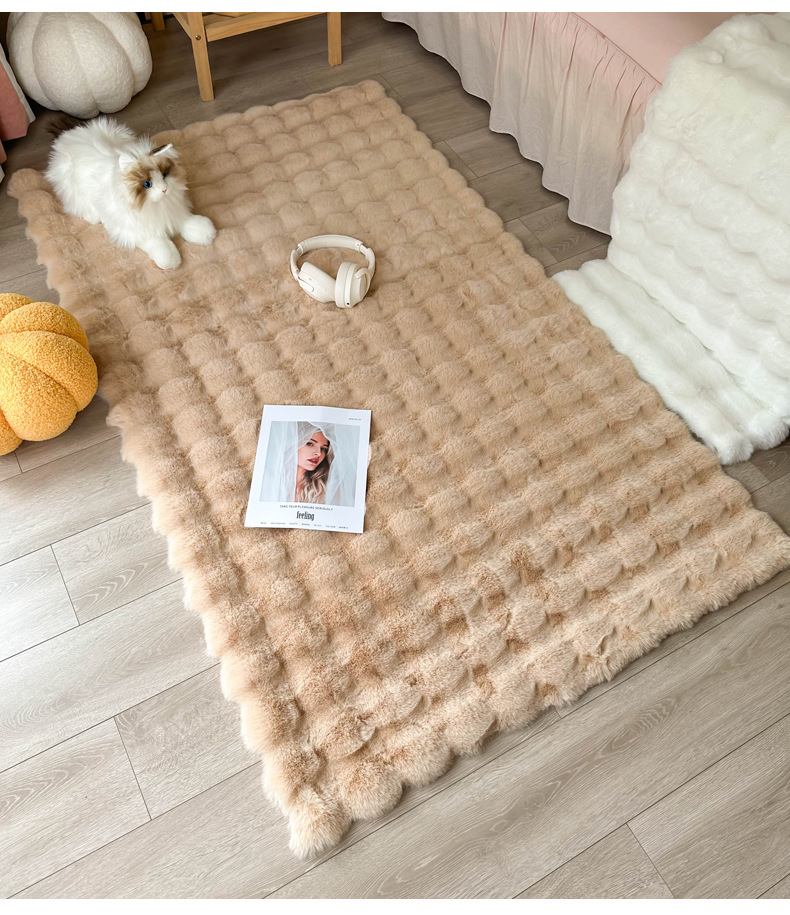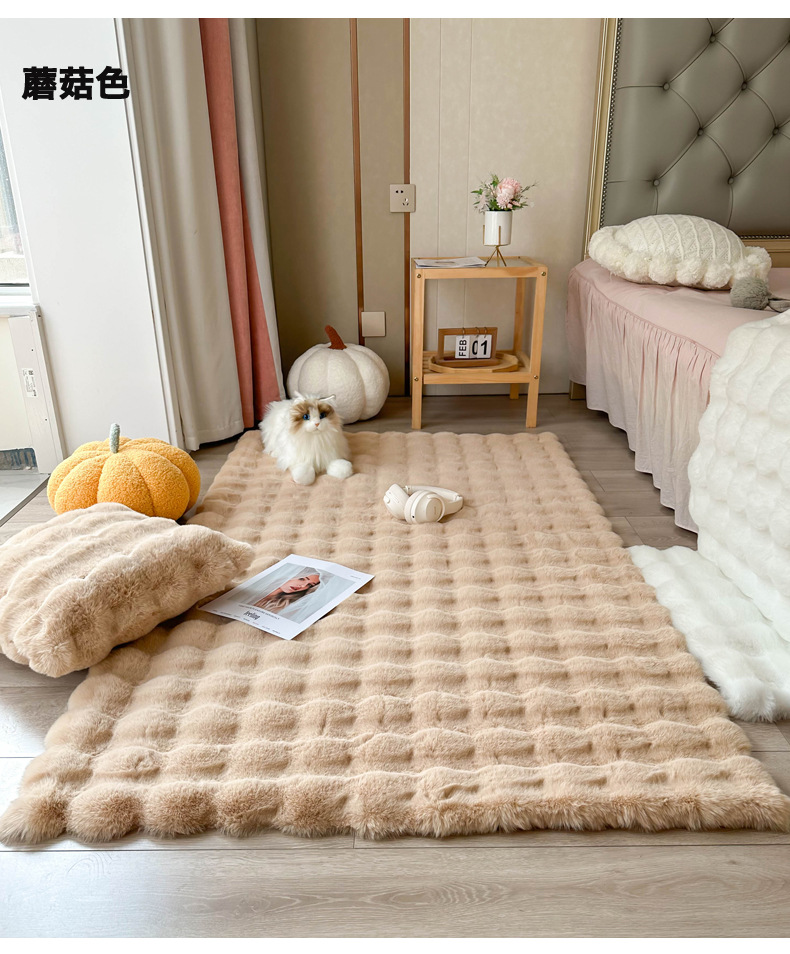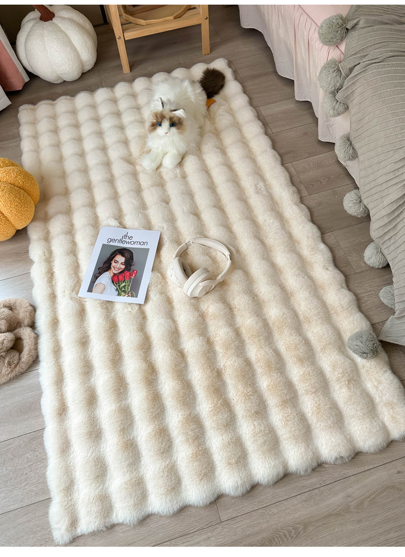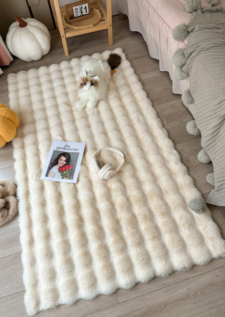 Alfombra de piel de conejo color crema, tapete de terciopelo burbuja, alfombra de dormitorio junto a la cama, tapete para ventana de salón, tapete para mesa de centro, engrosada.