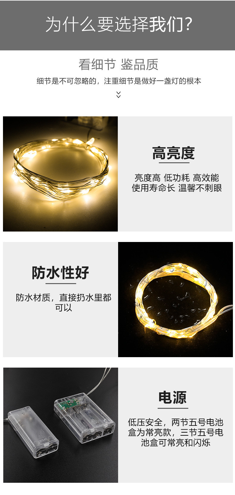 5 M 50 luces 3 cajas de batería (largo brillante + intermitente)