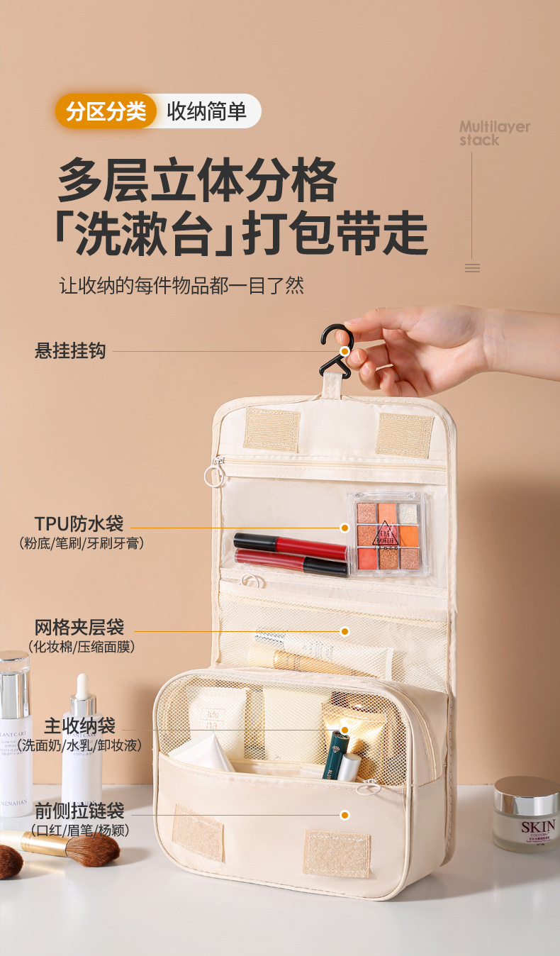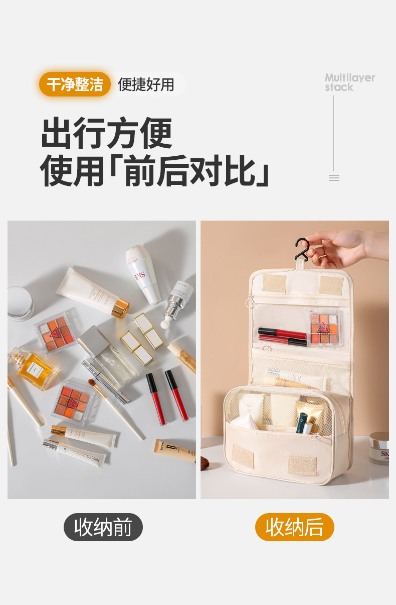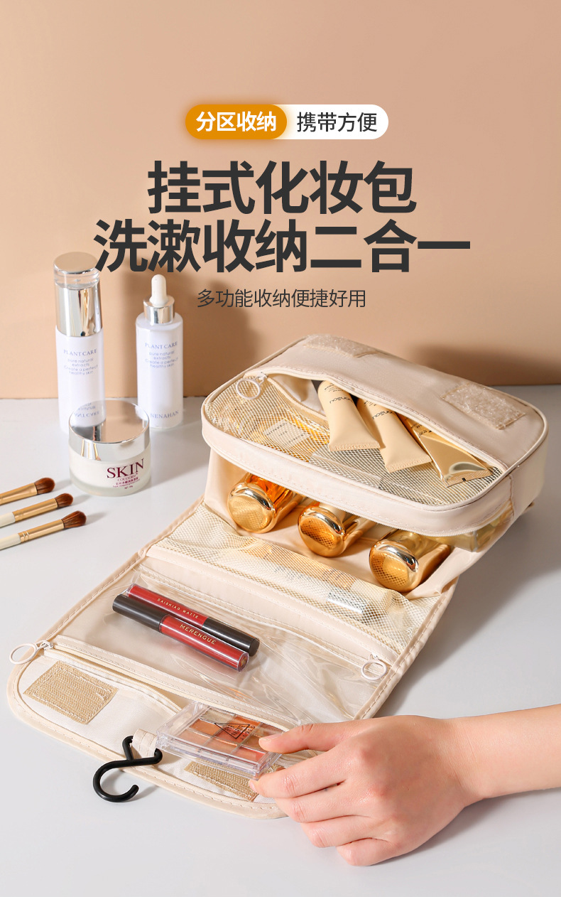 Gran capacidad húmeda y seca separación gancho bolsa portátil viaje simple chica corazón cosmético bolsa lavado plegable almacenamiento