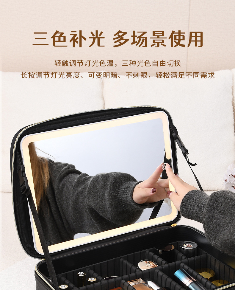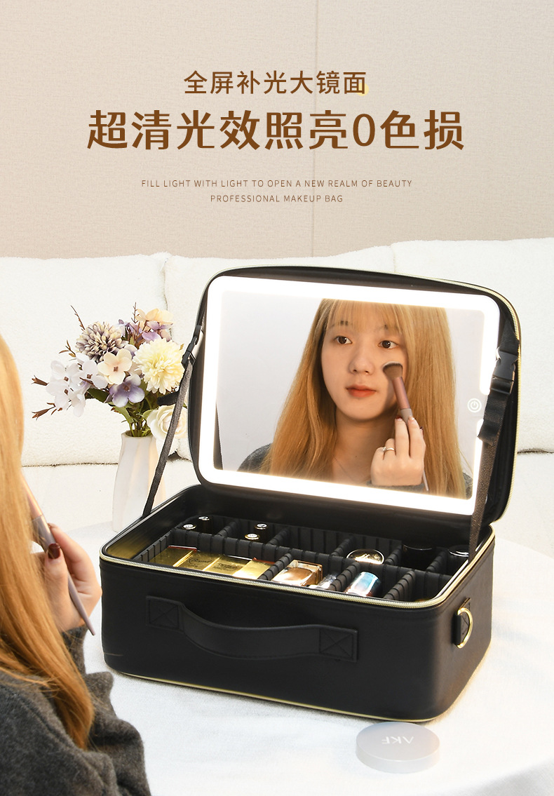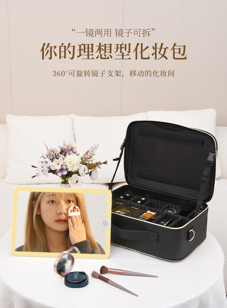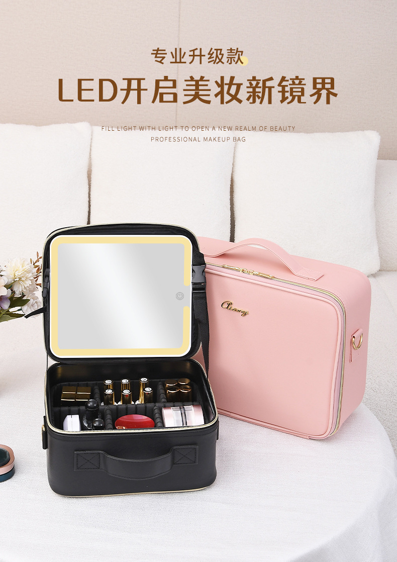 Bolsa de cosméticos para mujeres 2023 nueva caja de almacenamiento de espejo cosmético maleta de alta calidad portátil integrada de gran capacidad con luz LED