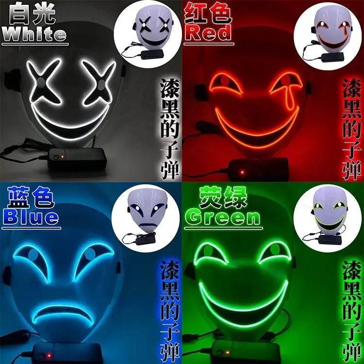 Nuevo creativo LED Halloween payaso brillante máscara blanco verde azul rojo llorando sonrisa pelo payaso