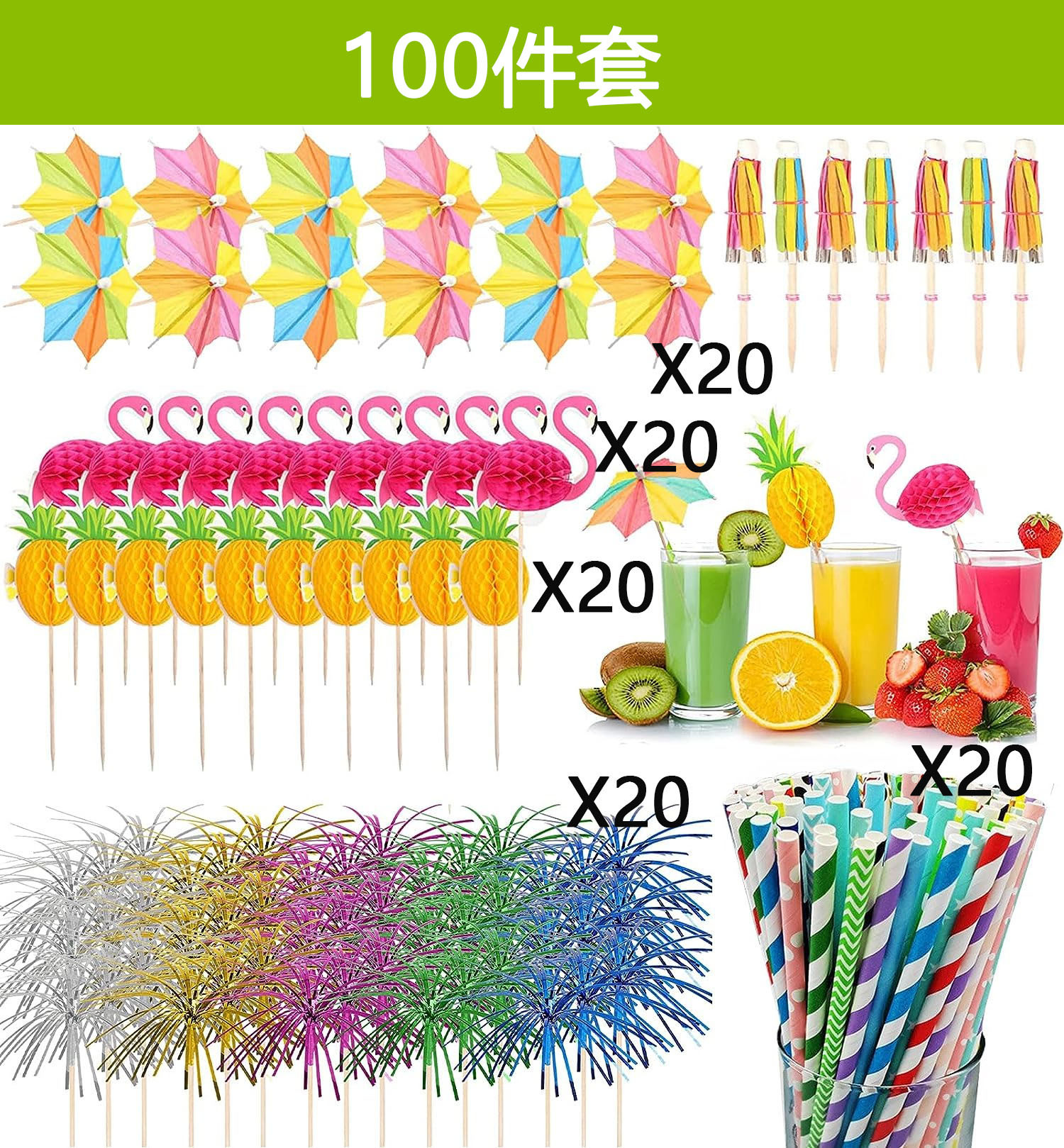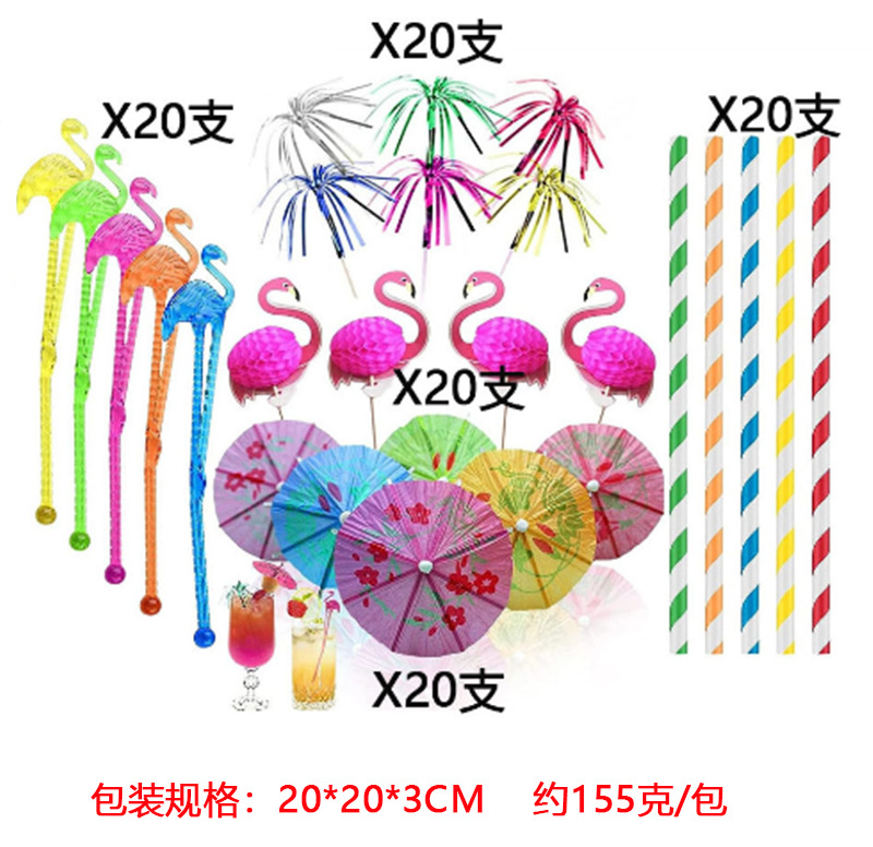 Traje combinación Hawaii Internet celebridad postre hornear decoración Tarjeta de inserción taza de vacaciones paraguas signo Flamingo panal