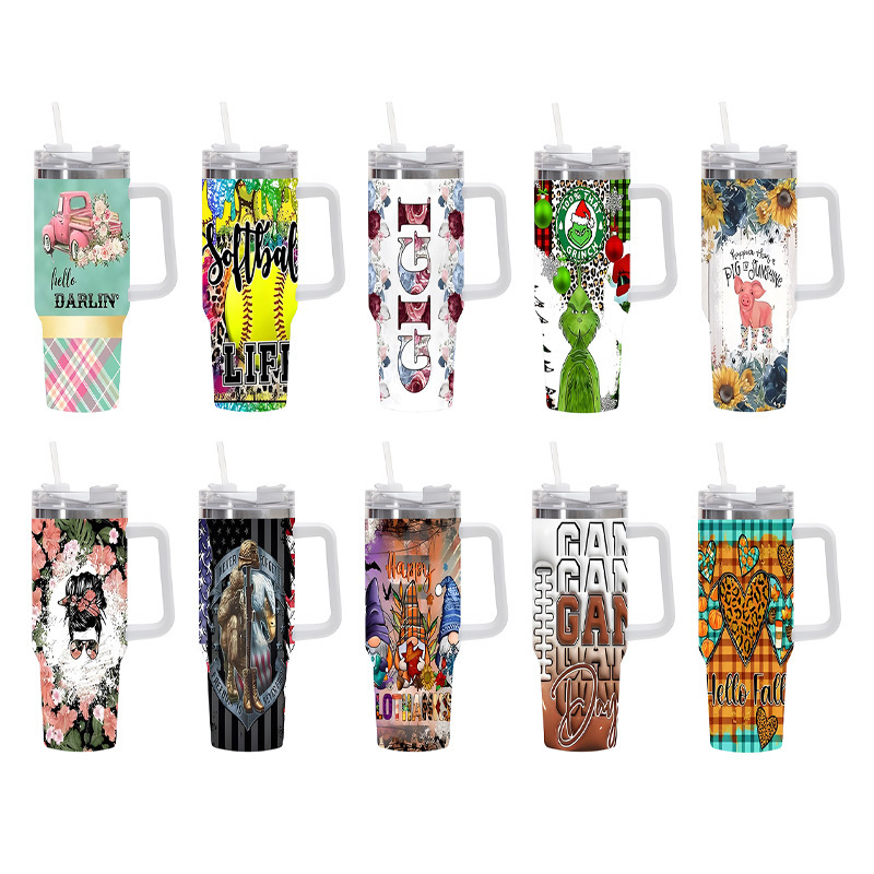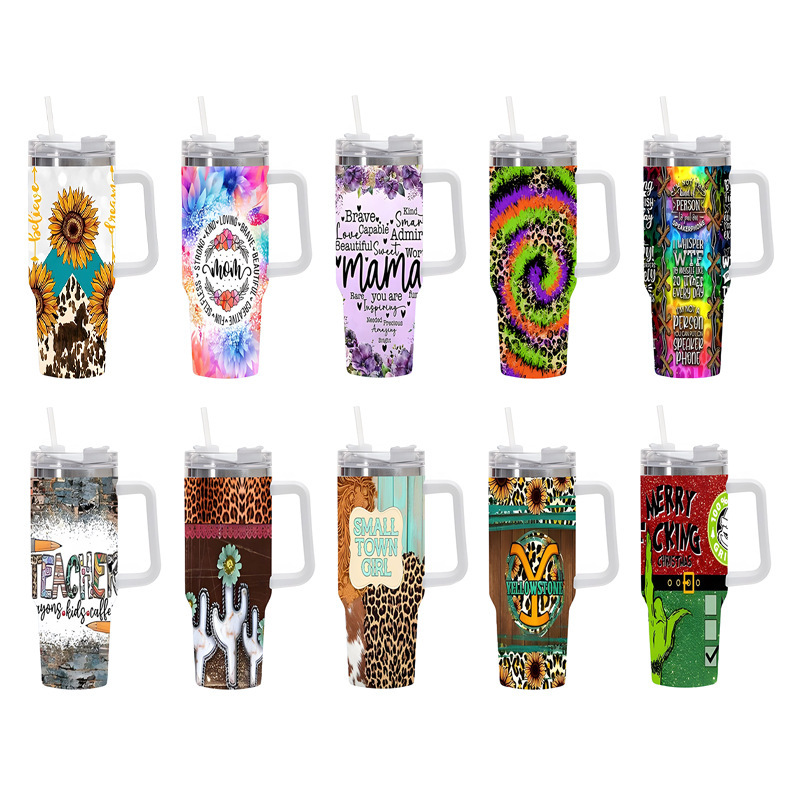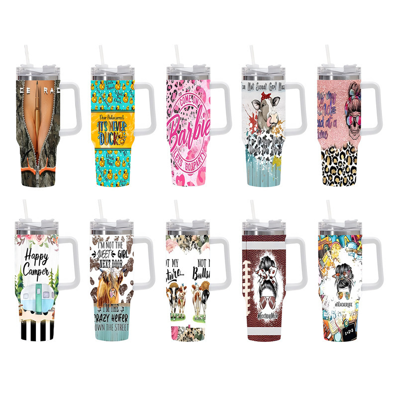Vaso térmico de acero inoxidable con aislamiento al vacío de 40 oz, para automóvil, de gran capacidad, con impresión UV de diseño 5D, para viajes transfronterizos.