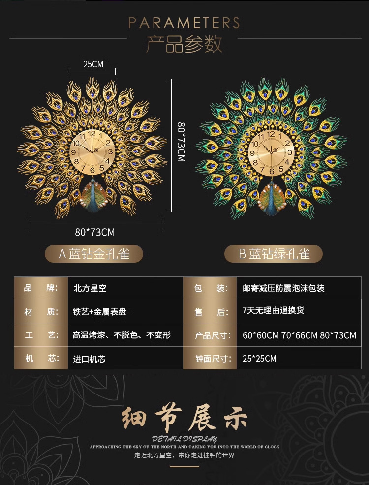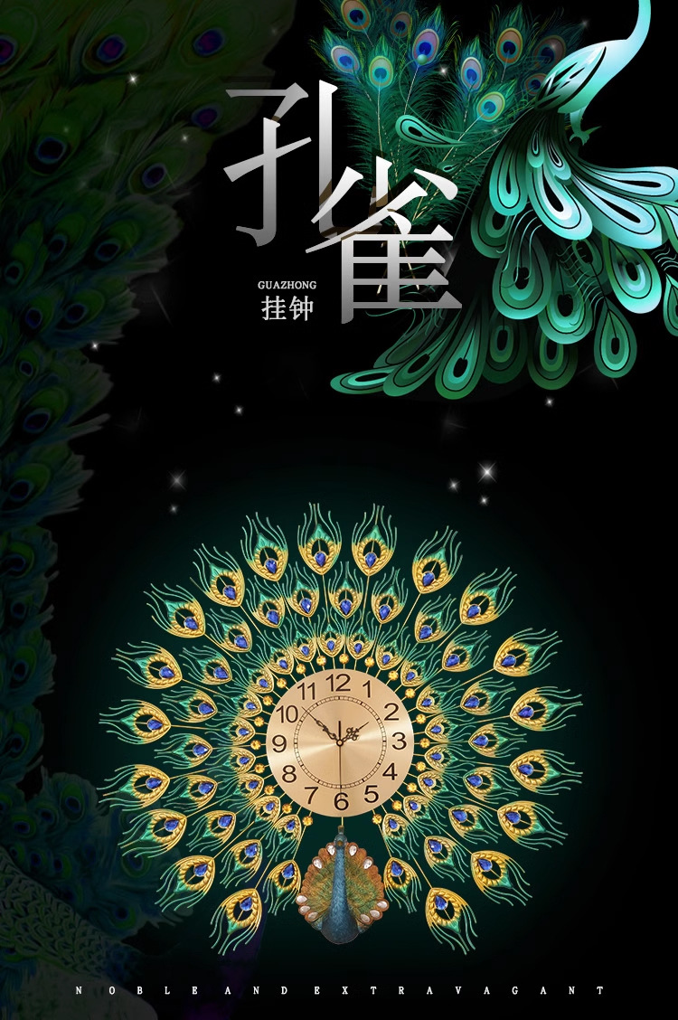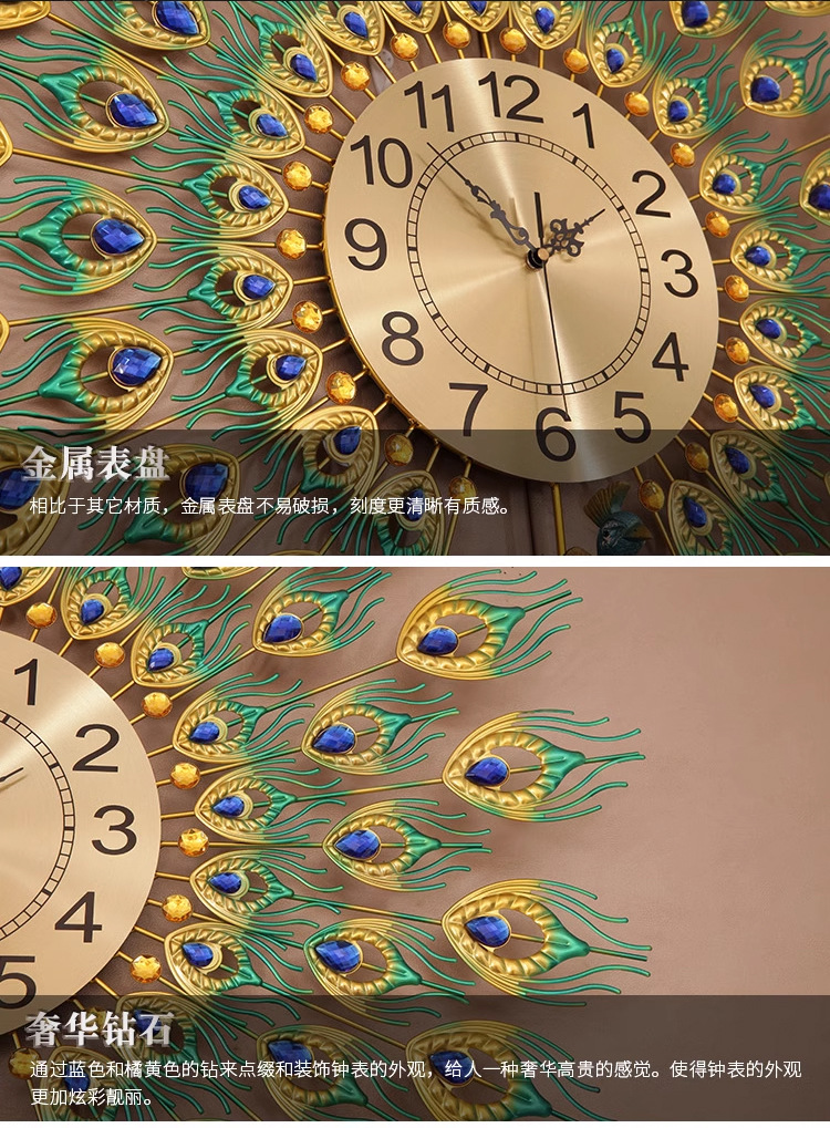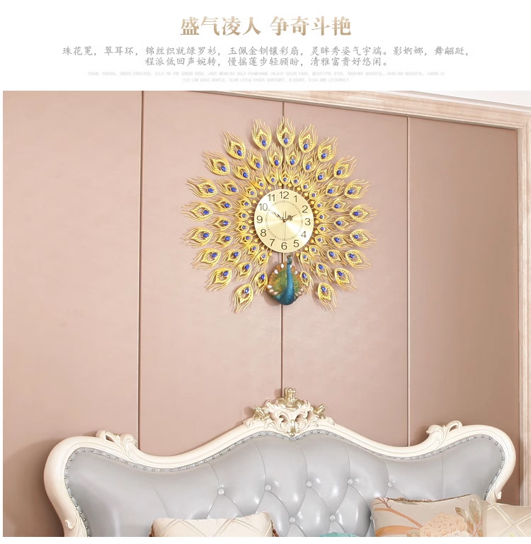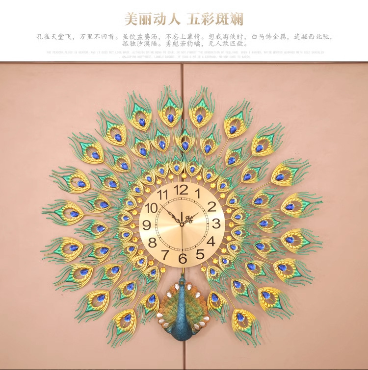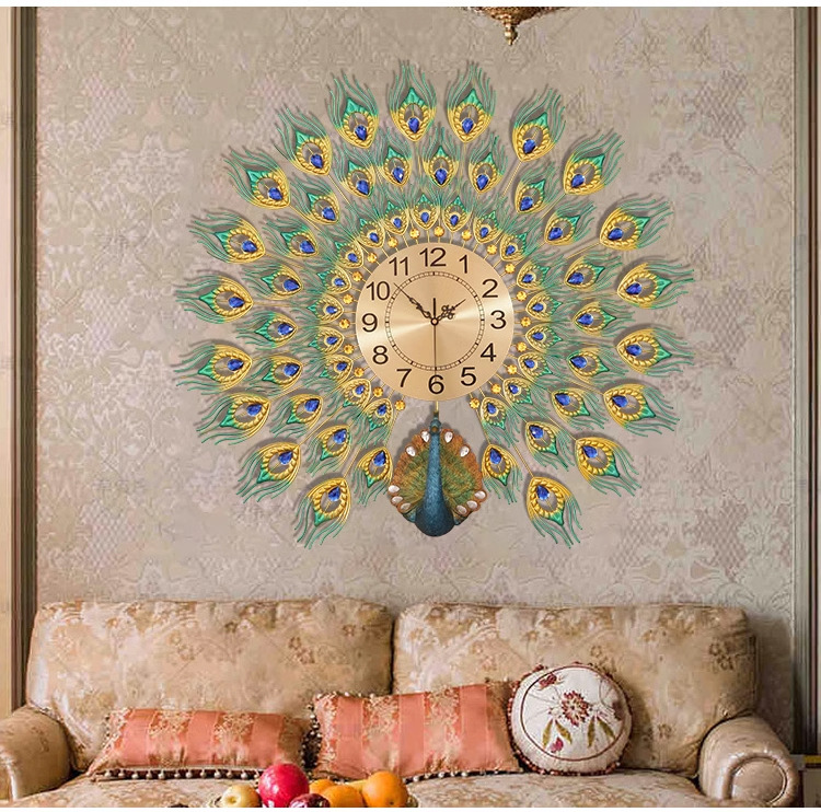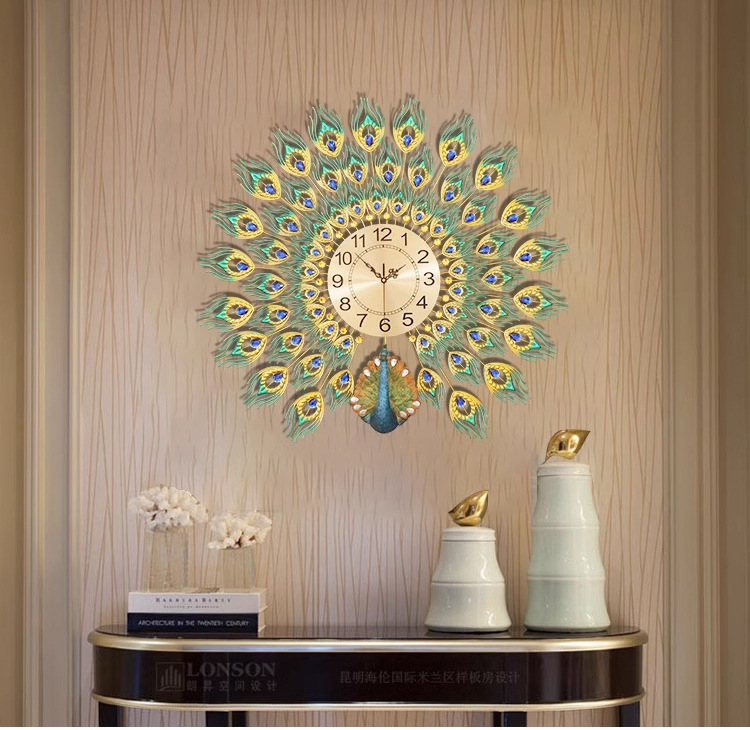 Moda reloj nórdico sala de estar moderno minimalista hogar reloj decorativo montado en la pared Red rojo restaurante creativo Reloj de pared Pavo Real