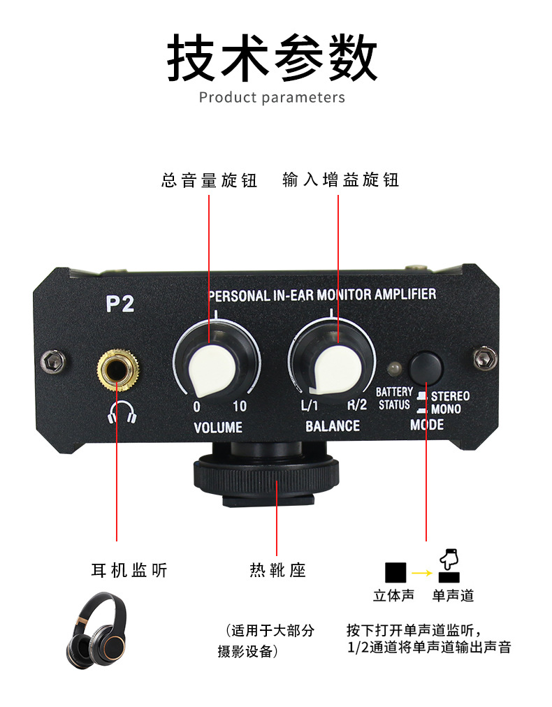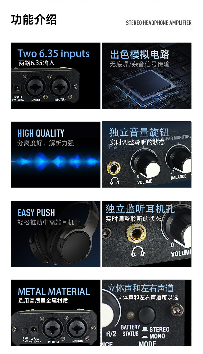 2-Way amplificador de auriculares baterista instrumento musical especial oído retorno XLR carnong equilibrio de entrada al aire libre distribuidor de rendimiento