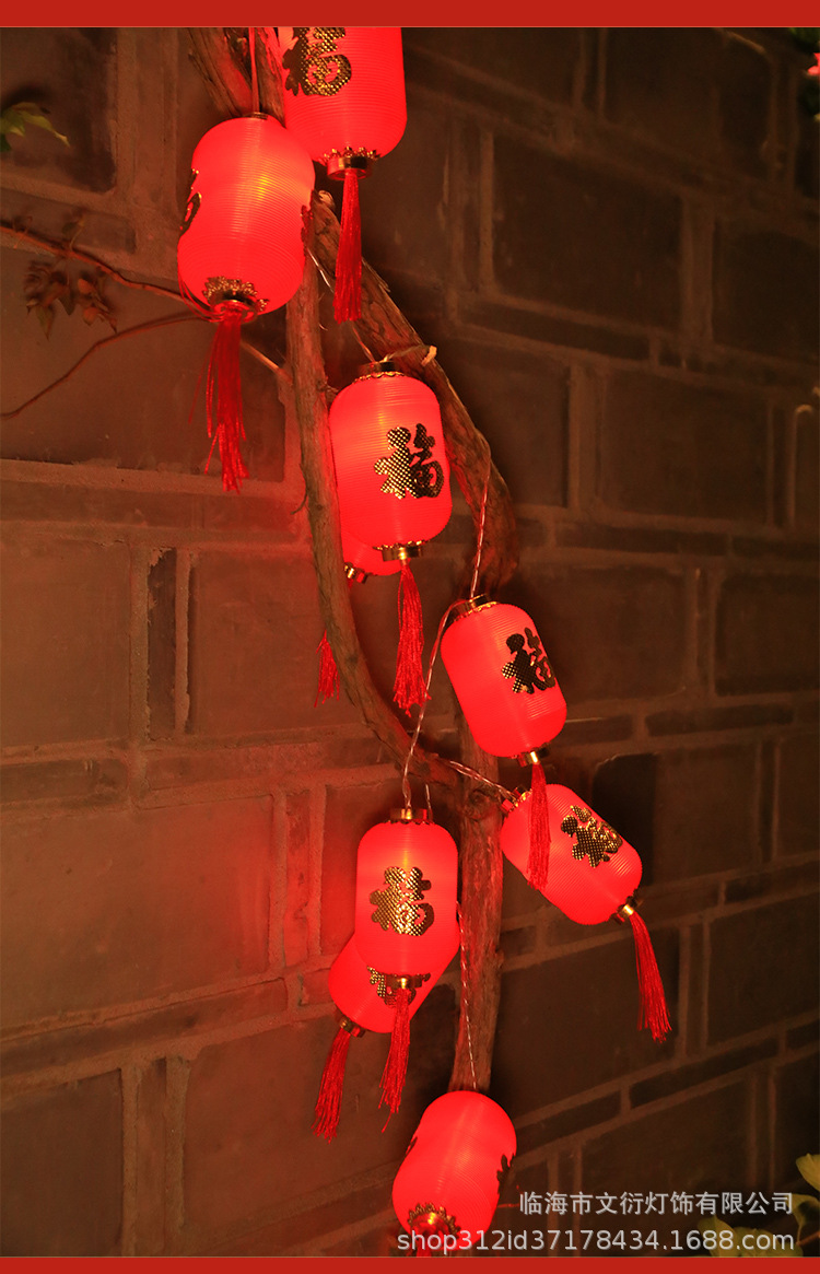 LED rojo linterna cadena cinco bendición linterna Año Nuevo Festival de Primavera linterna decoraciones linterna solar