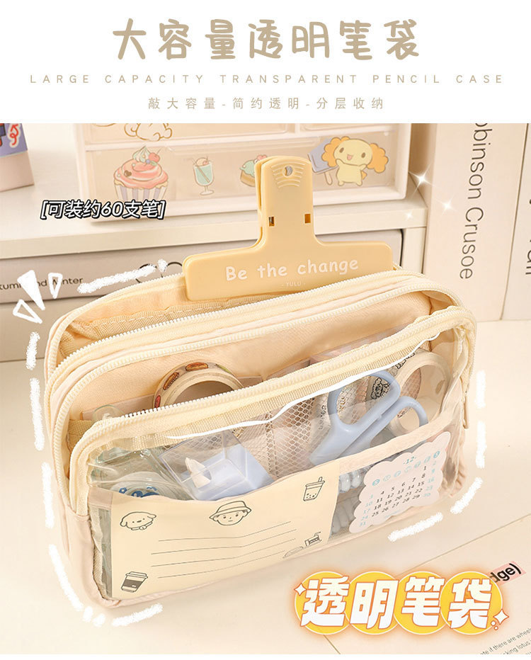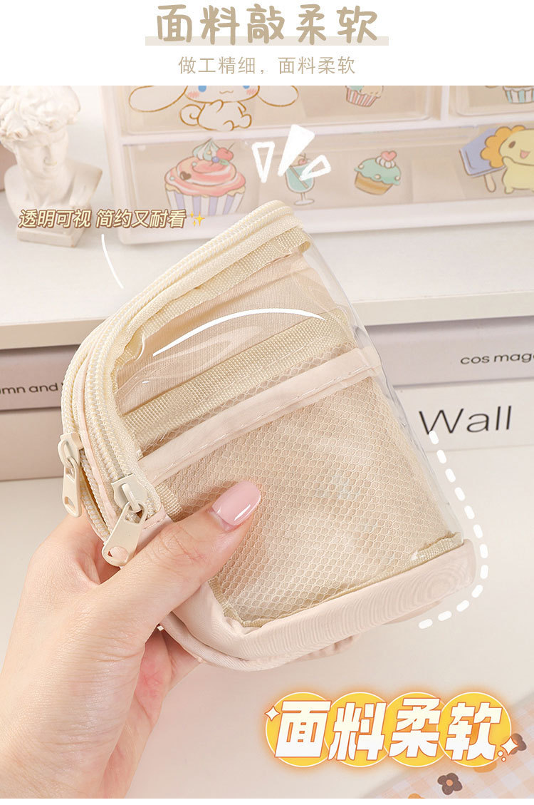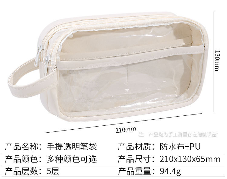 Caja de lápiz transparente de gran capacidad de tres capas chica Escuela Secundaria primaria estudiante caja de lápiz caja de papelería simple bolsa de almacenamiento