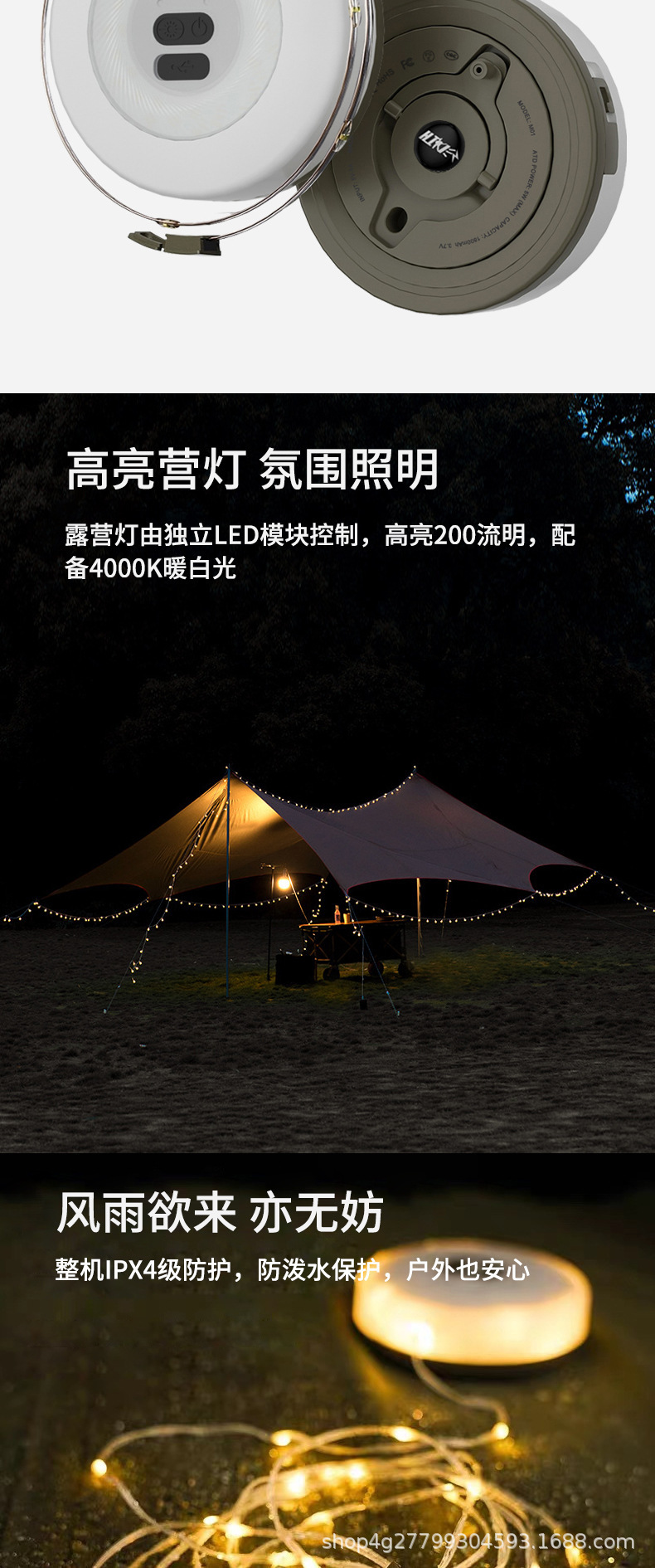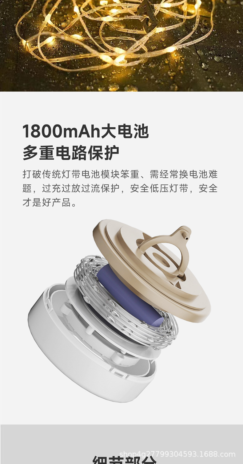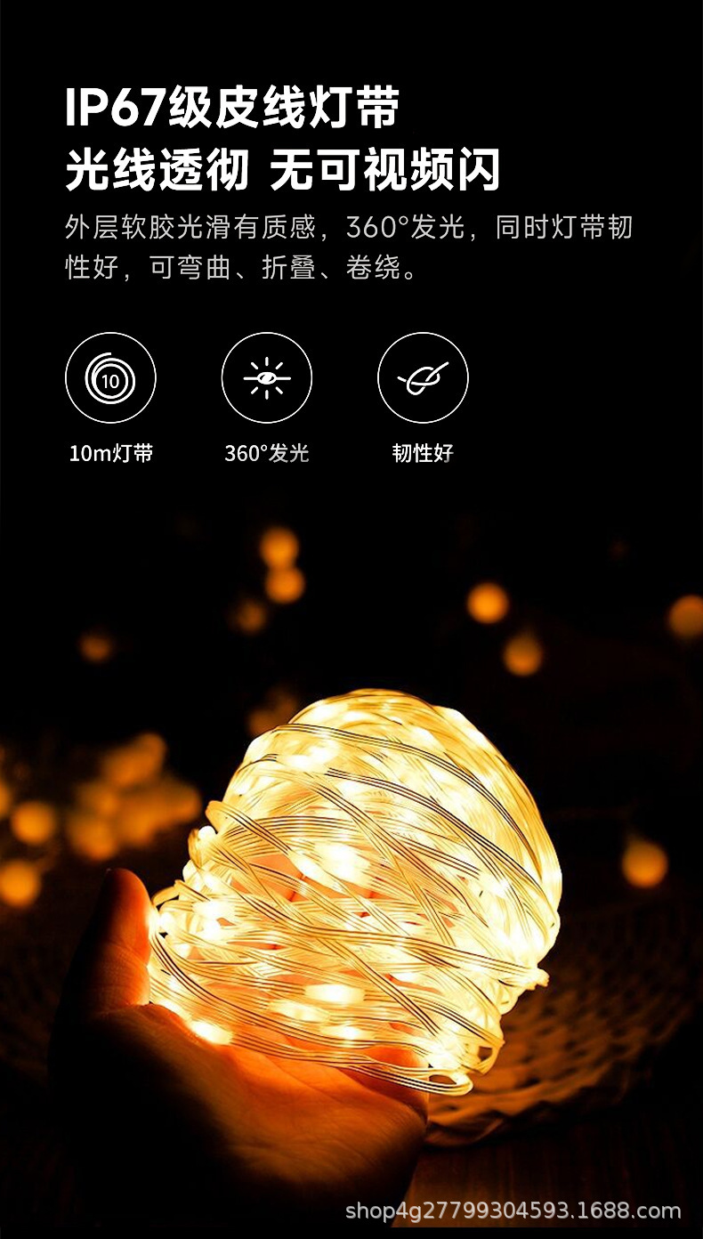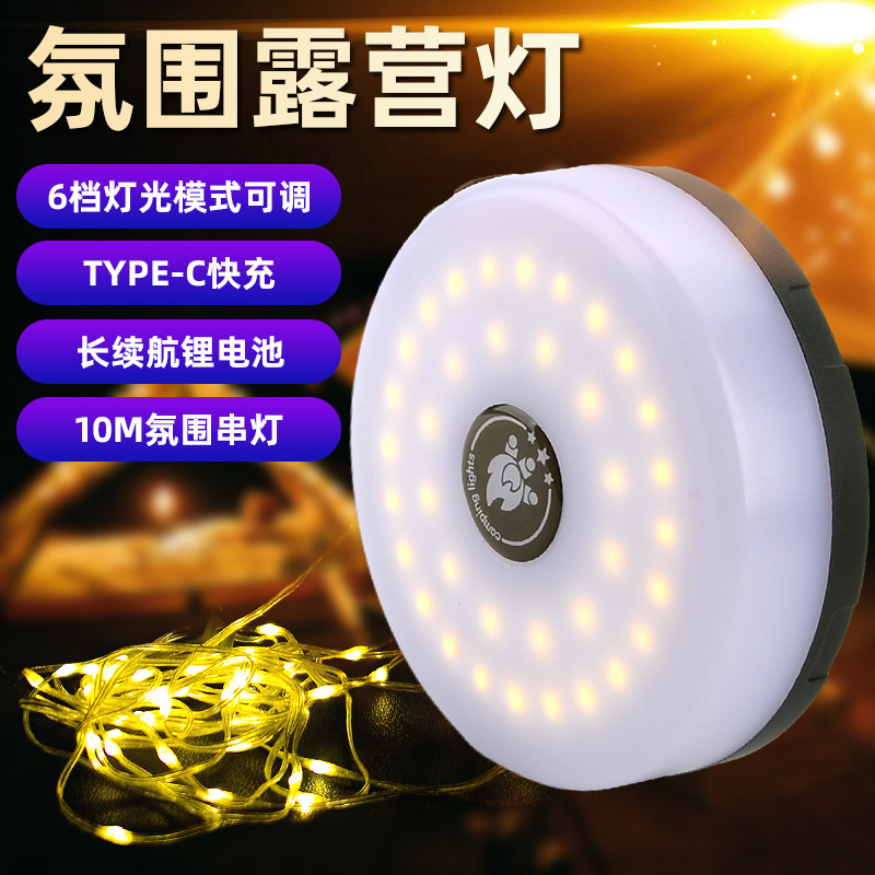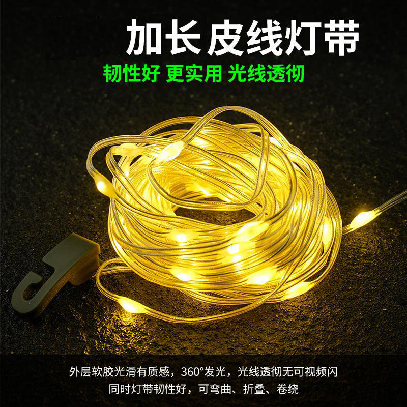 La nueva luz led de almacenamiento se puede usar para acampar, luz de tamaño enrollado, luz de ambiente de carpa, luz de Navidad multifuncional, luz de cadena de almacenamiento