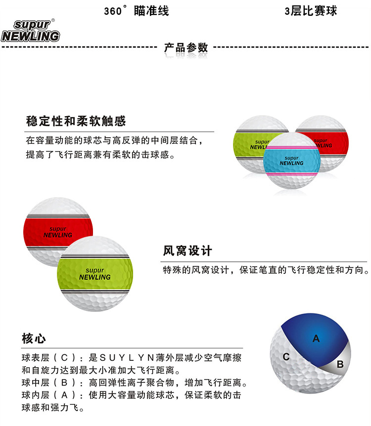 Golf marca nueva Bola de competición de tres capas 360 grados alineación sin fisuras putter bola final de alta densidad logotipo imprimible