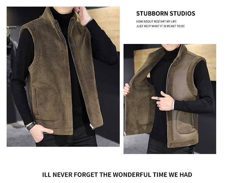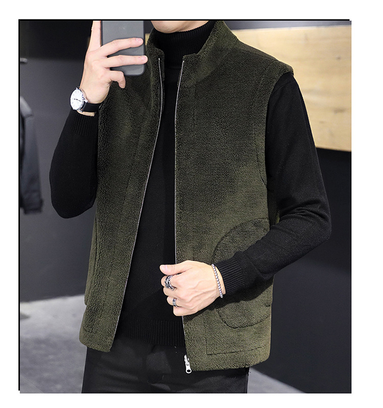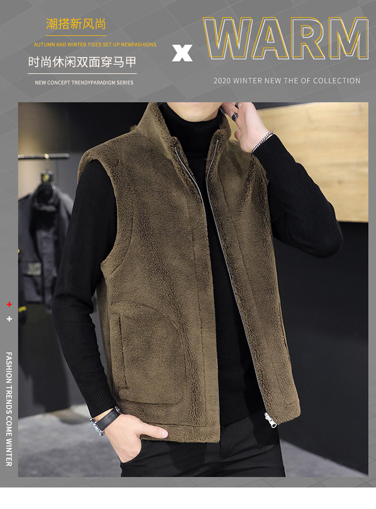2022 ropa de los hombres-Otoño e Invierno principal de empuje de la piel de un solo lado desgaste todo-coincidencia de moda chaleco de lana granular hombres