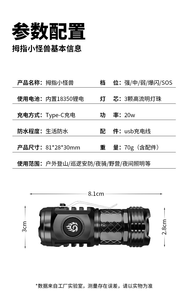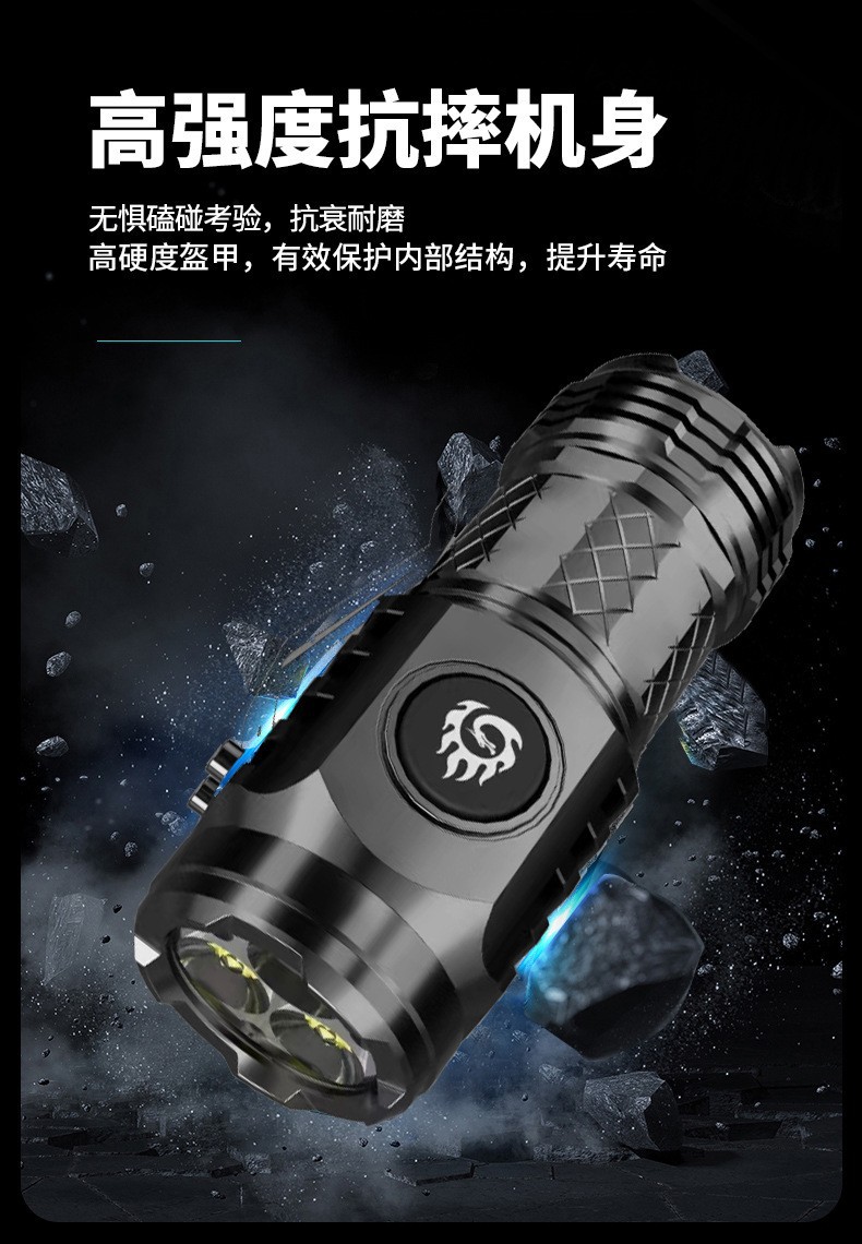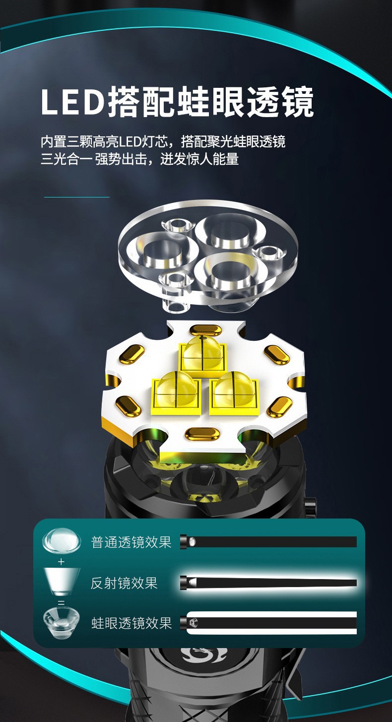 Transfronterizo nueva luz fuerte de tres ojos monstruo linterna brillante Wick hogar portátil multi-funcional al aire libre linterna LED