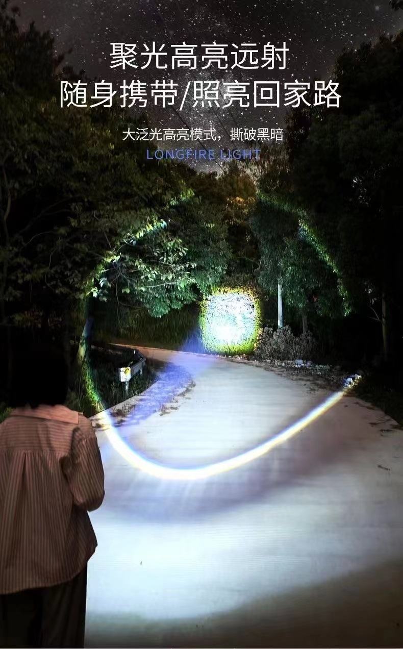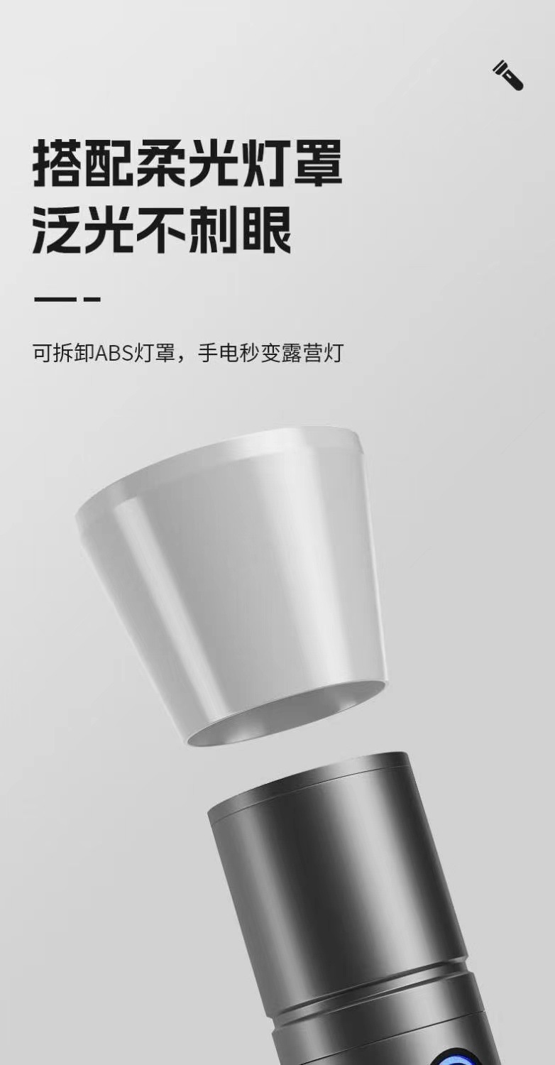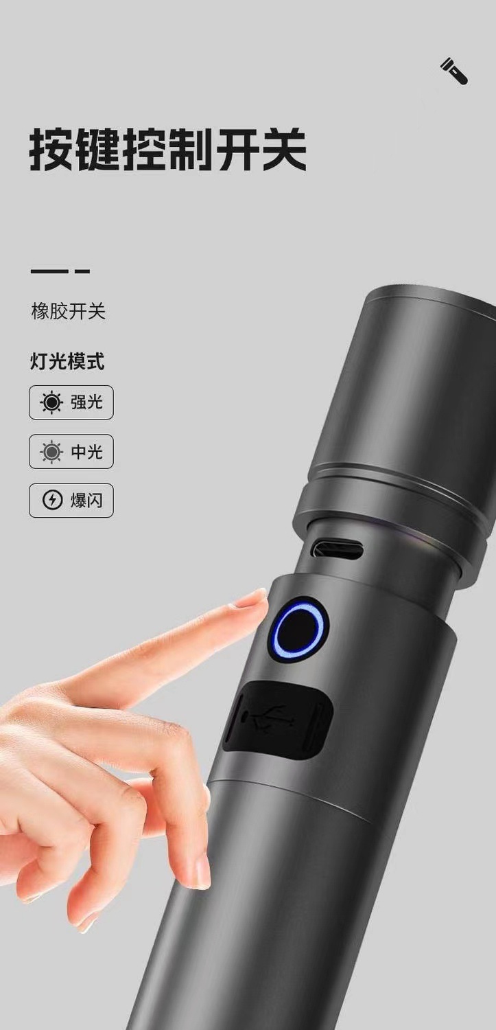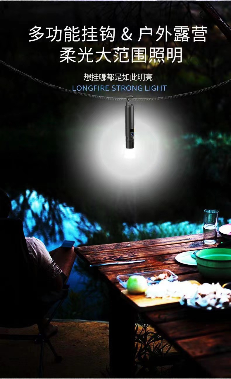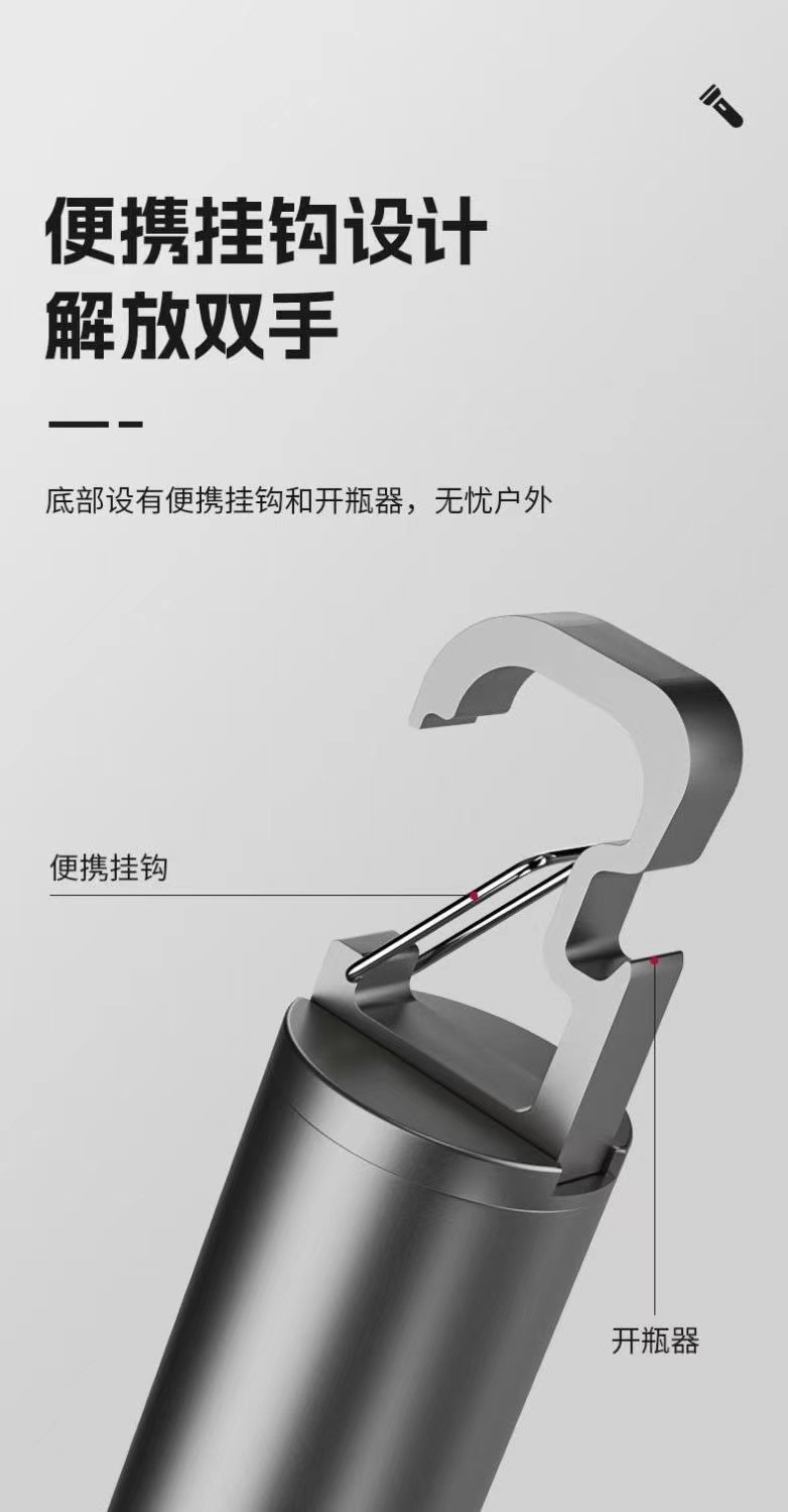 Nueva linterna láser blanca con zoom telescópico, función de banco de energía USB, gancho, abrebotellas, largo alcance y alto brillo