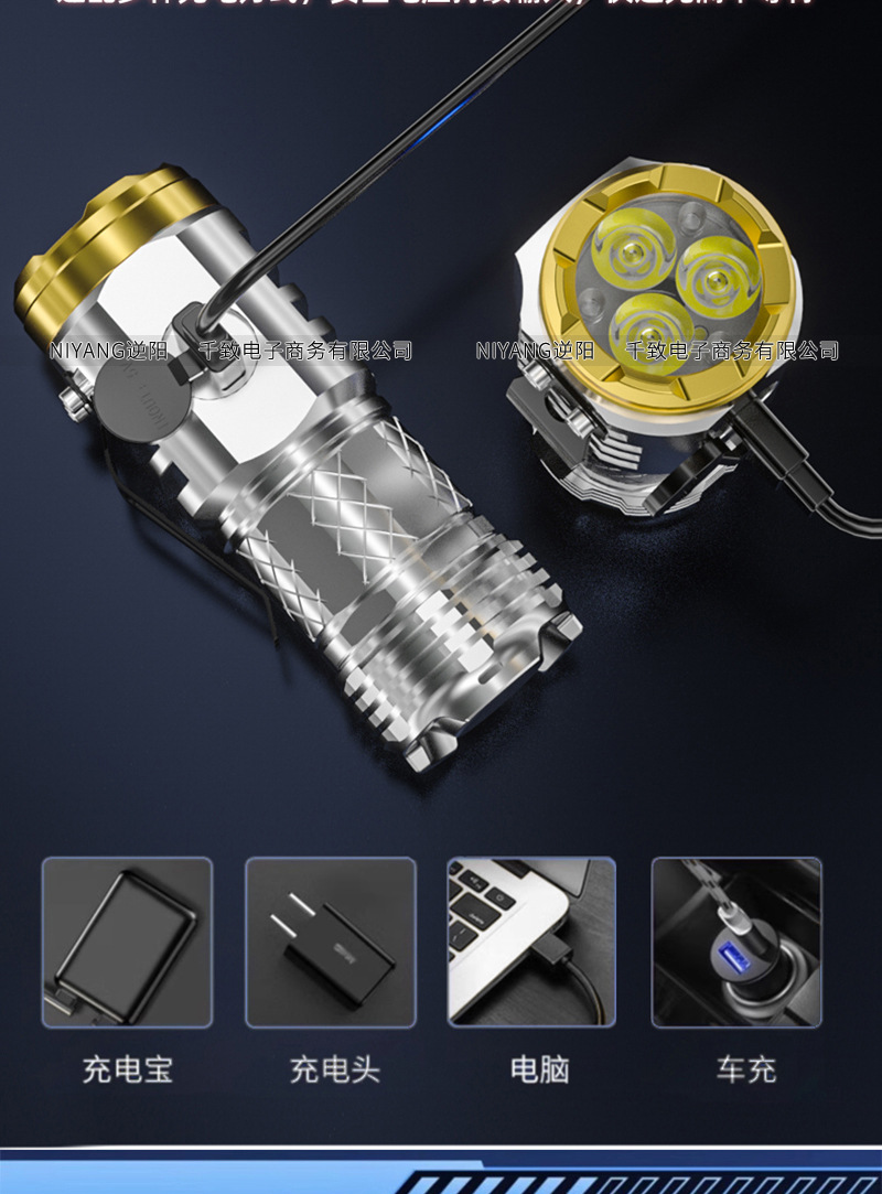 Linterna S60 de Alta Potencia de Tres Ojos, Luz de Largo Alcance Recargable