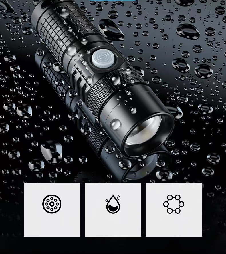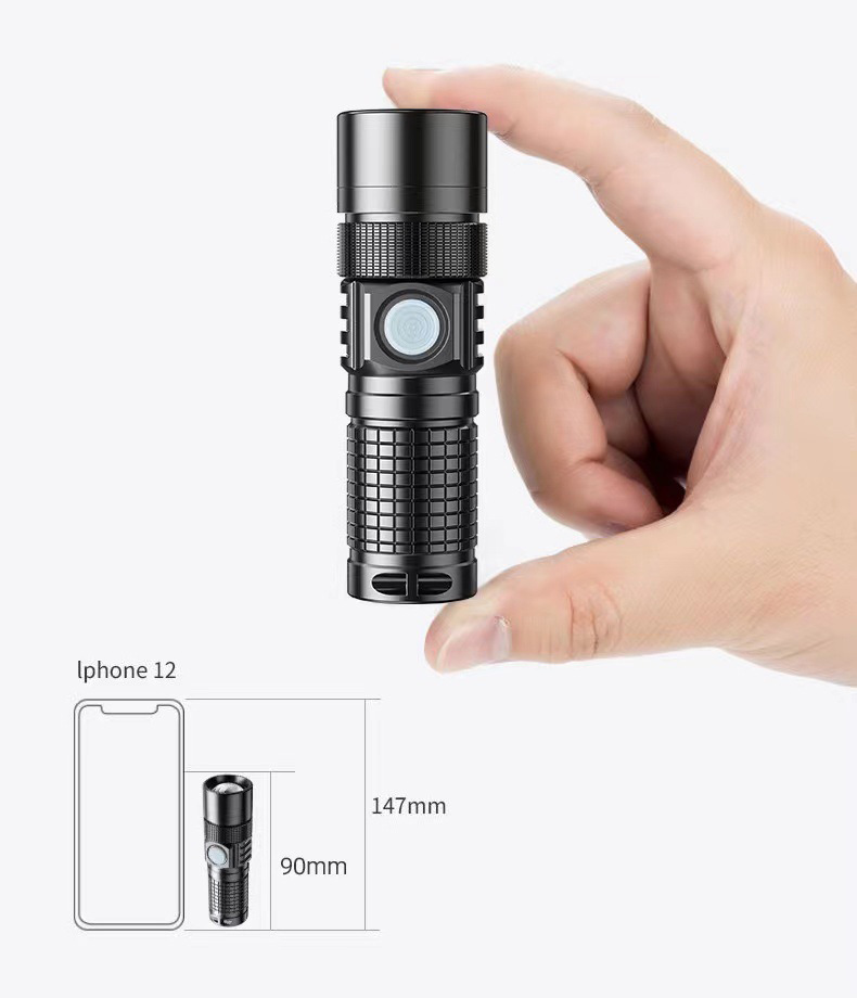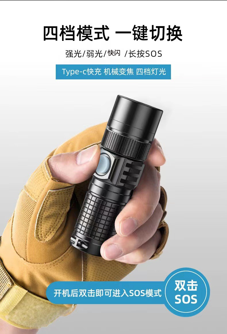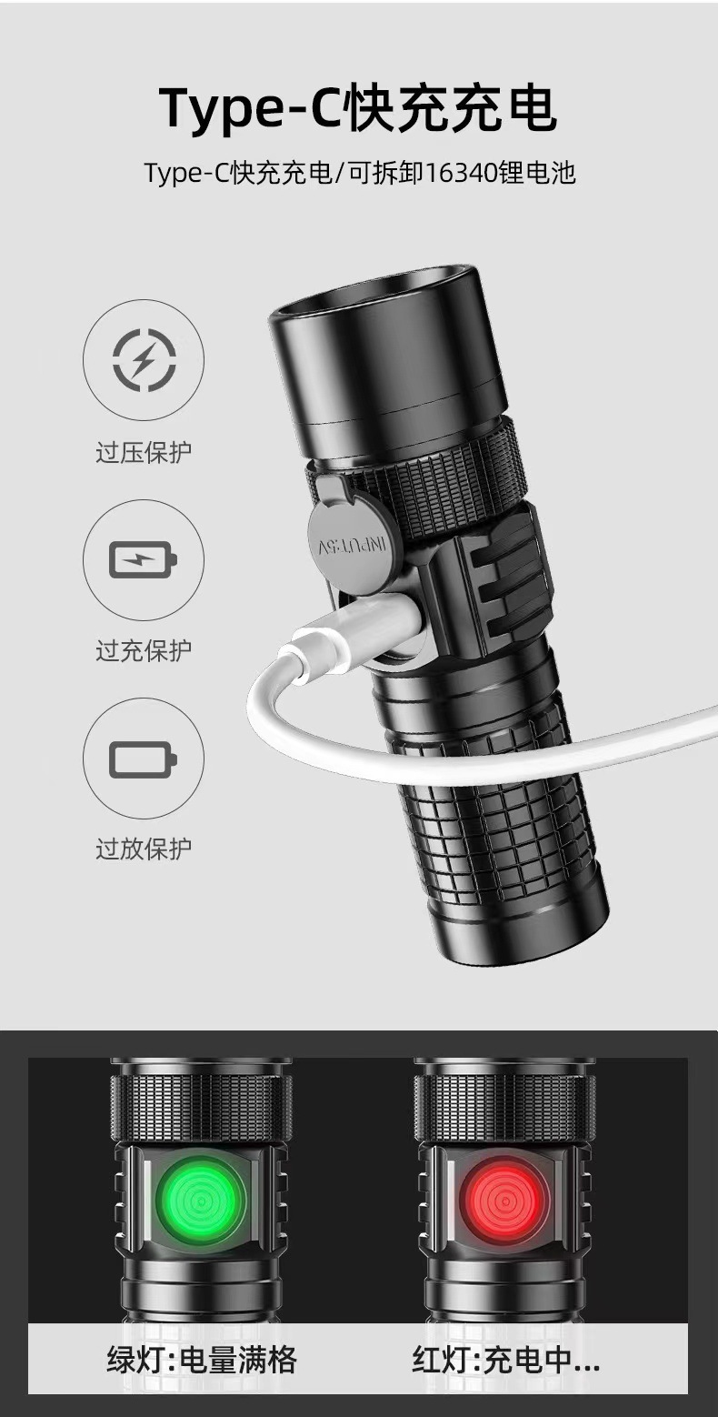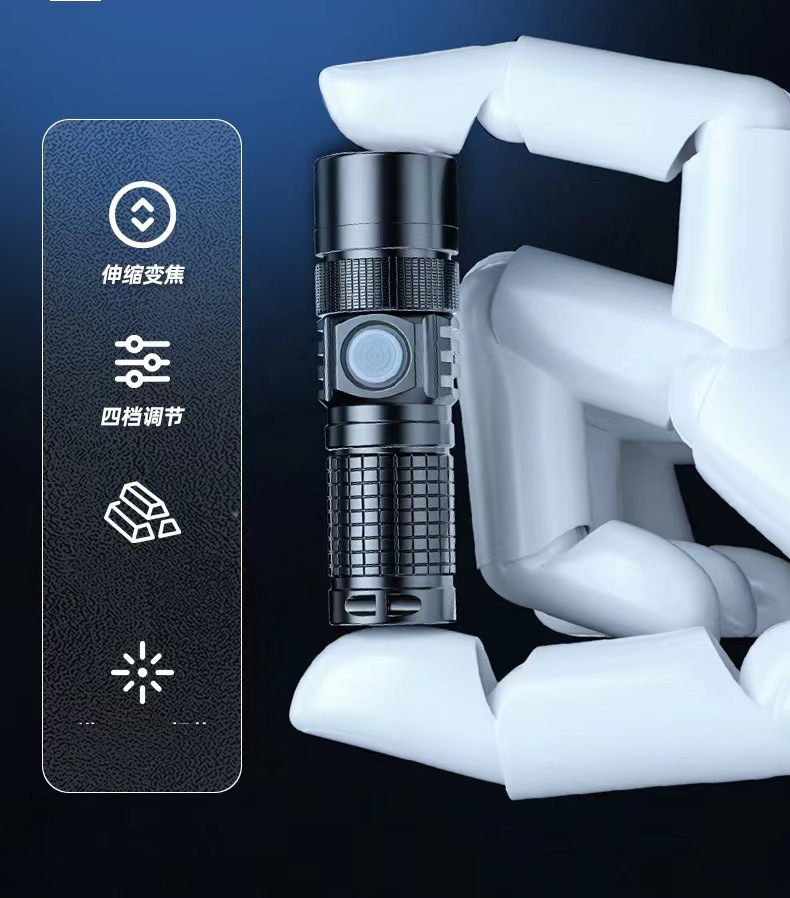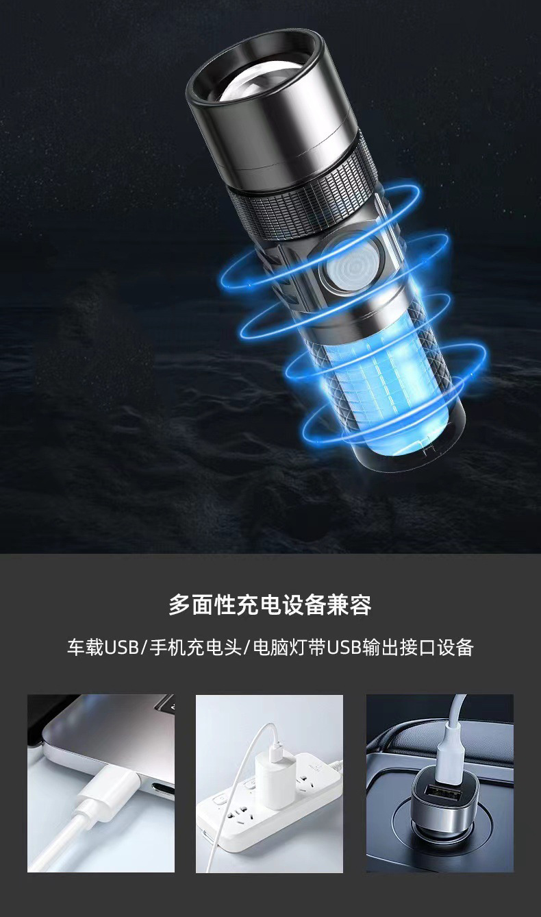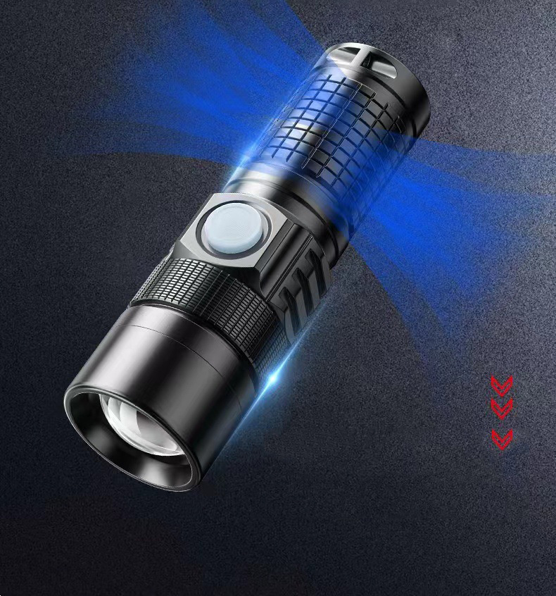 Mini linterna al aire libre multifuncional recargable p50 fuerte cordón ligero portátil fuerte luz tipo-c linterna zoom
