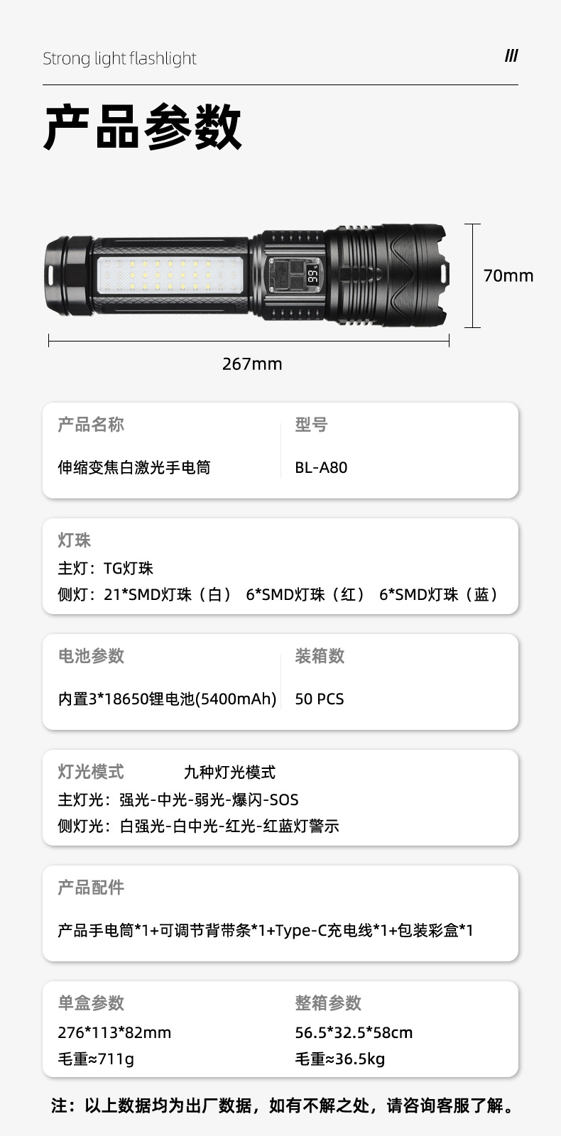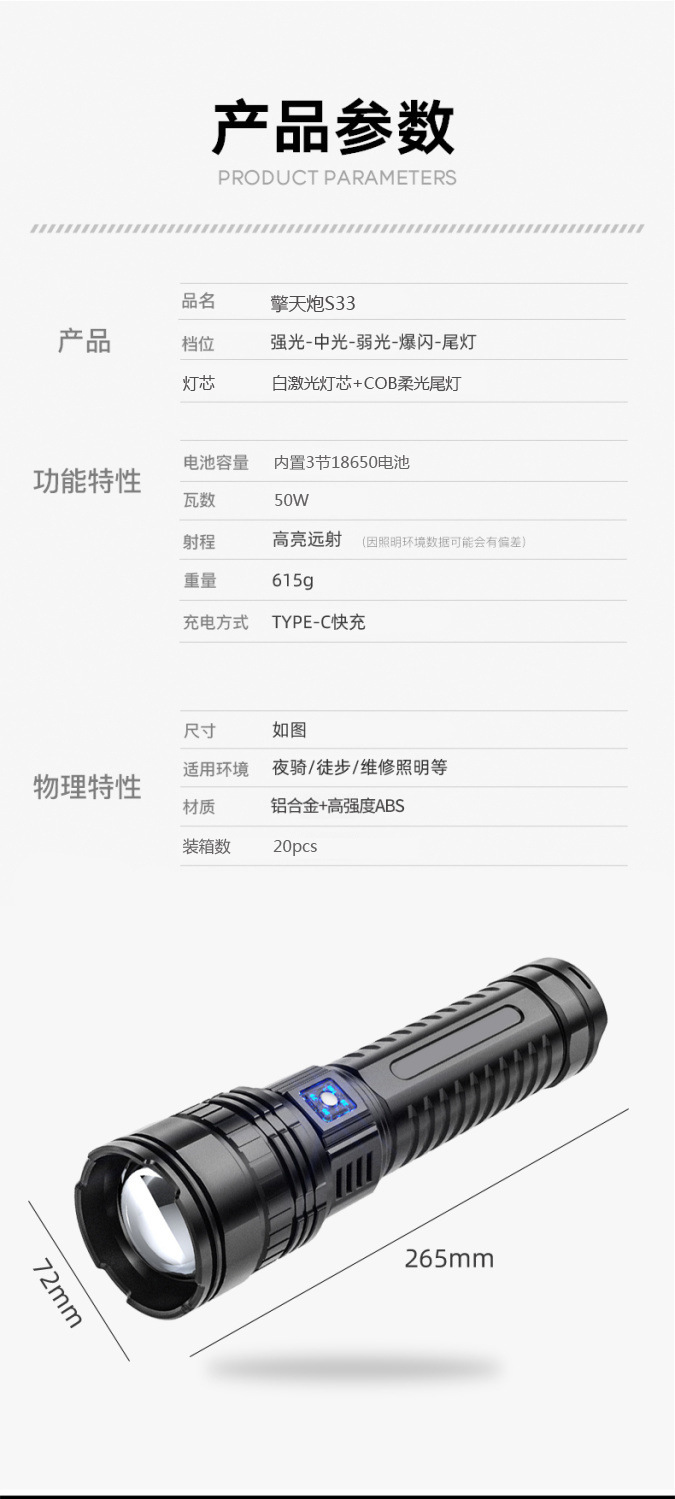 Tiktok caliente super grande linterna láser blanco super brillante de largo alcance led multifunción recargable al aire libre Sky Gun