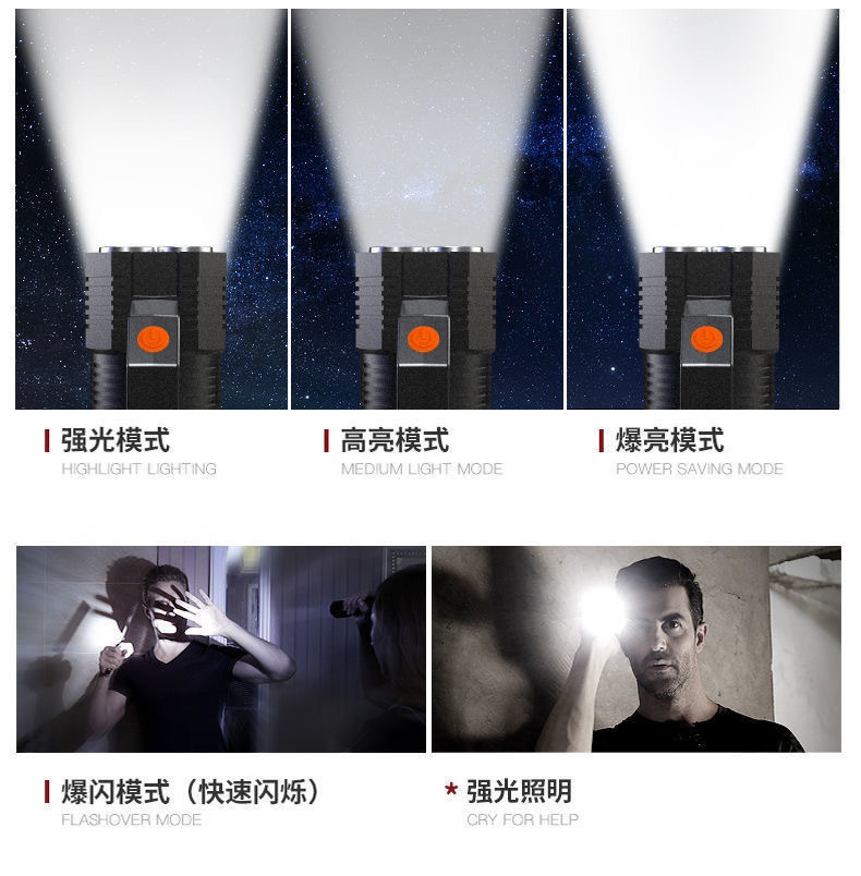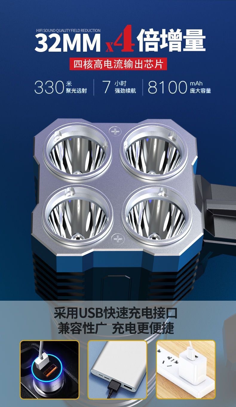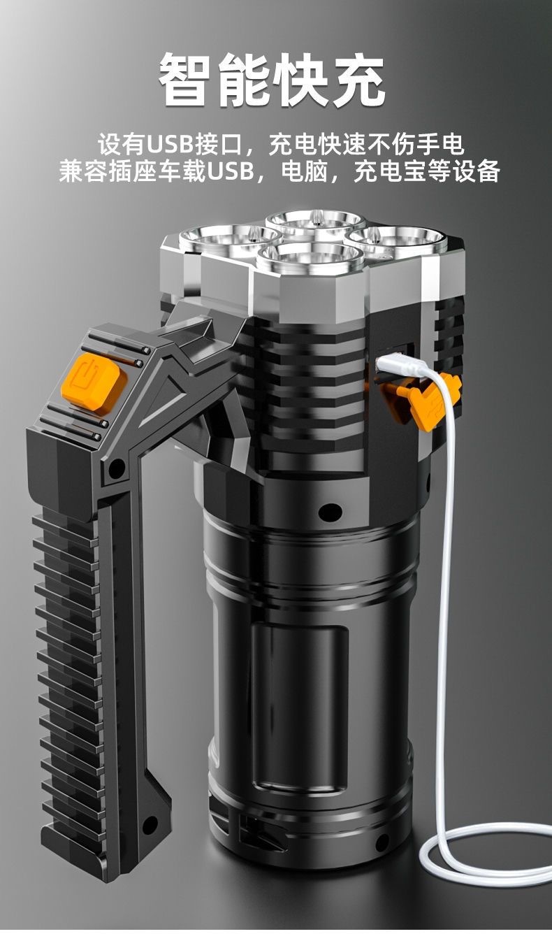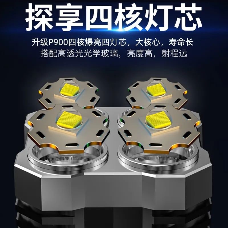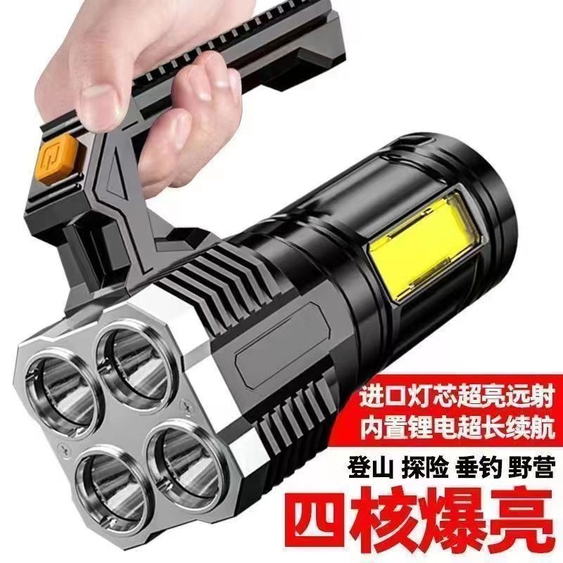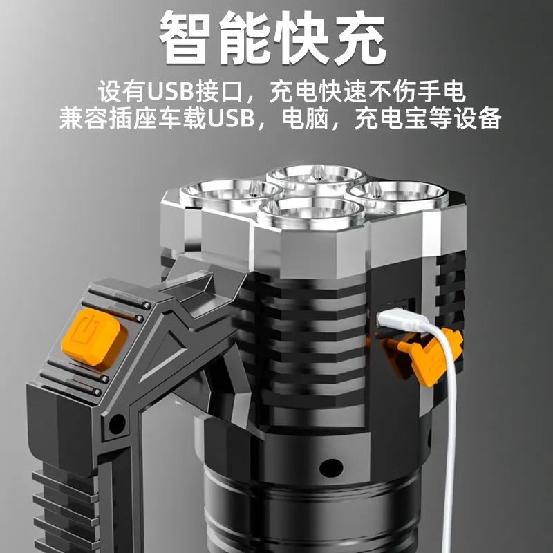 Noche de pesca larga resistencia hogar gran capacidad quad-core linterna fuerte luz de carga al aire libre Super brillante Lámpara portátil de largo alcance