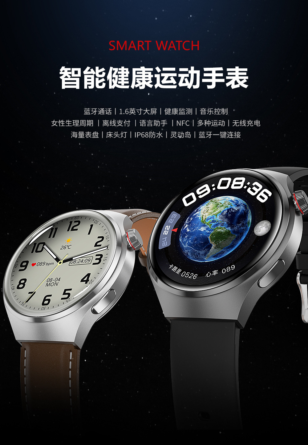 Reloj inteligente deportivo popular transfronterizo Gt4PRO con pantalla redonda, llamada Bluetooth, reloj inteligente deportivo resistente al agua, asistente de voz