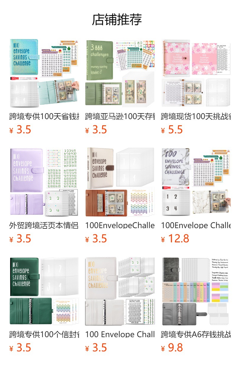 Libro de hojas sueltas especial transfronterizo Desafío de 100 días Libro de ahorro Cuaderno de ahorro 1-100 sobre de efectivo Película de tarjeta al por mayor