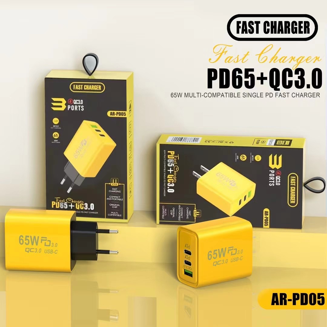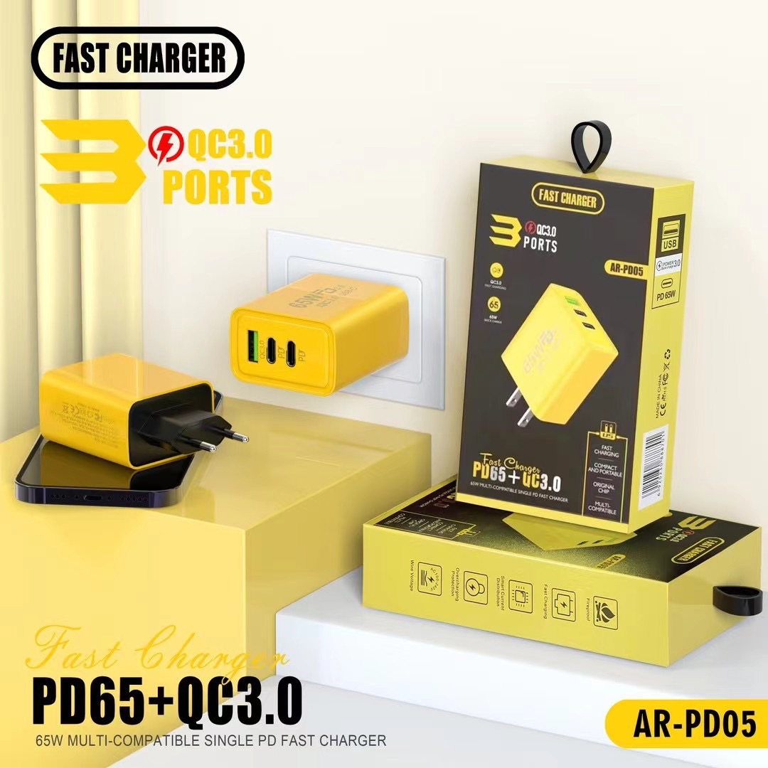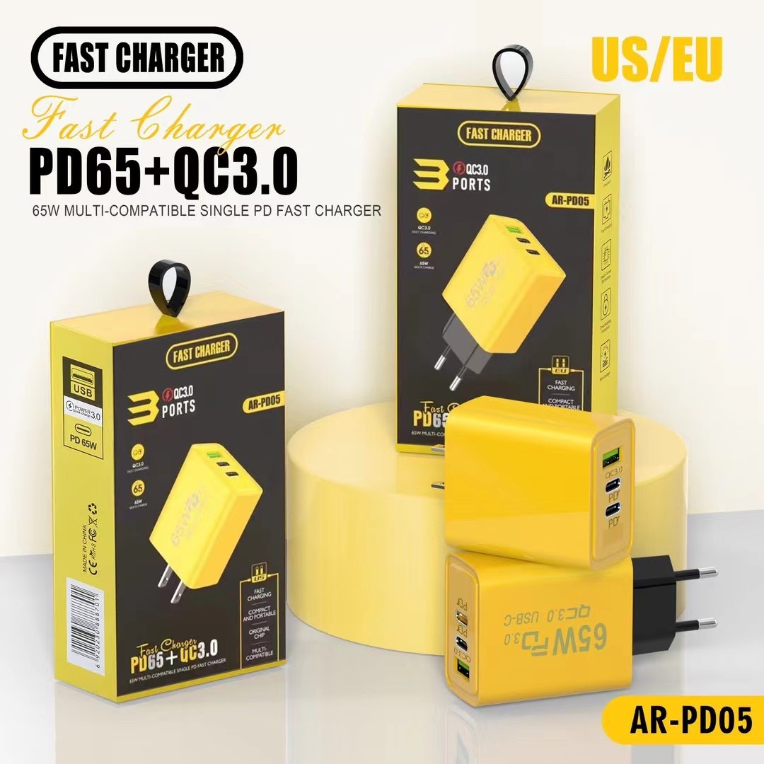 Cargador de carga rápida para teléfono móvil de 65W, doble tipo C + USB único, multipuerto PD, carga rápida, estándar de EE. UU., estándar europeo, cabezal de carga estándar británico