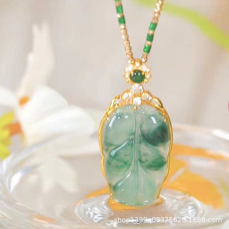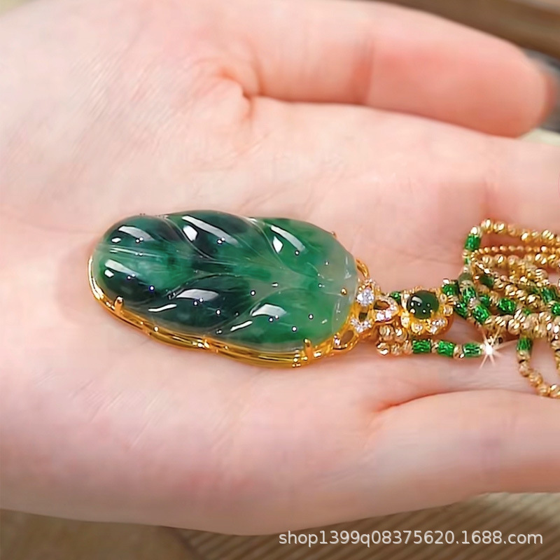 Jinji jade hoja de imitación jade verde collar colgante de las mujeres de hoja grande youcheng bambú suéter cadena colgante de ropa