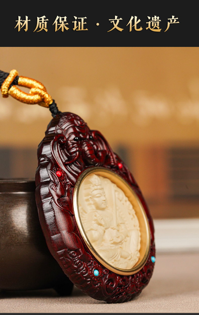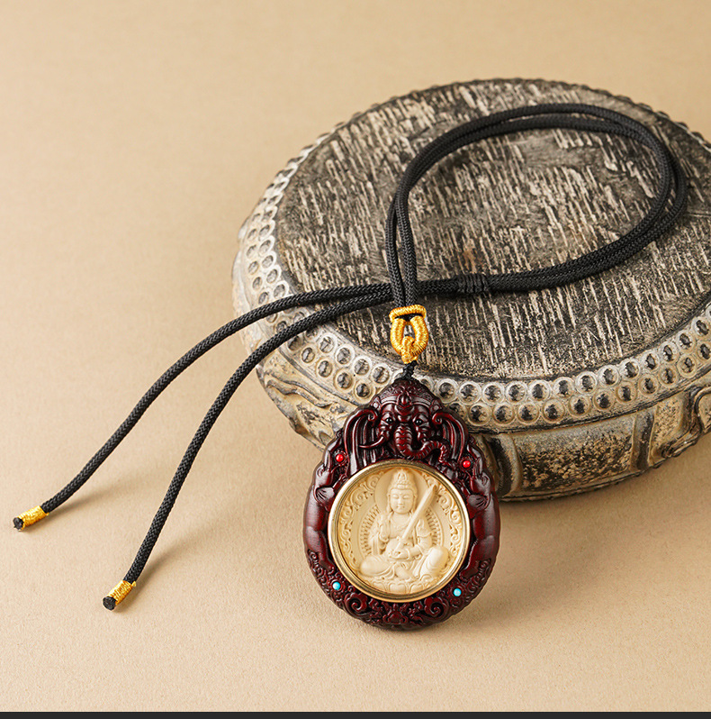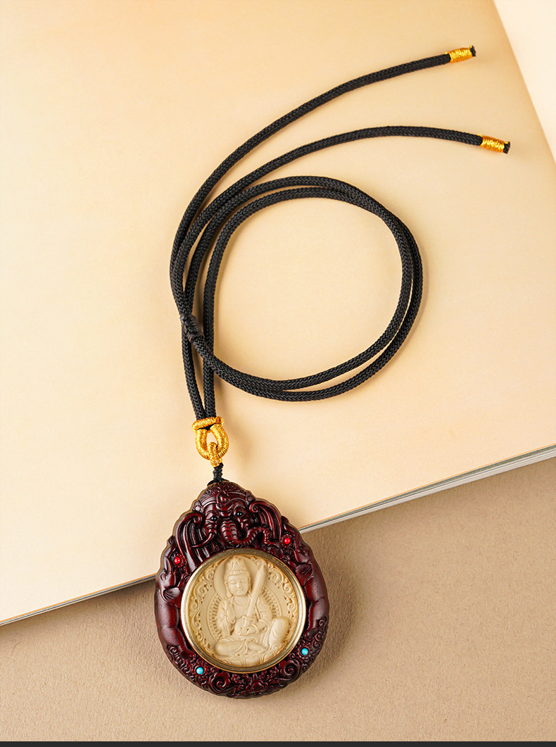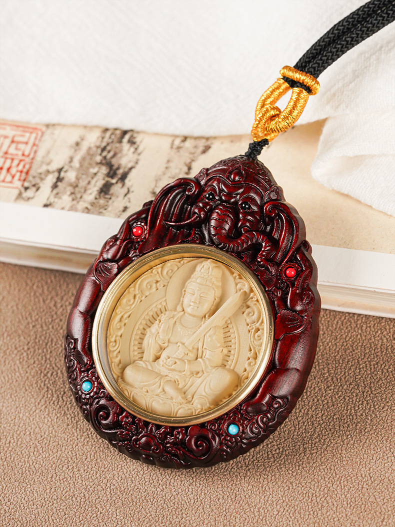 Colgante de Madera de Palisandro con Incrustaciones de Boj, los Doce Animales del Zodiaco, Amuleto de los Ocho Deidades Guardianas, Adorno para Coche, Estilo Chino, Samantabhadra