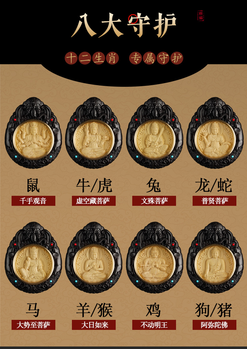 | Colores | Sándalo rojo: Avalokitesvara-Rata,Ébano: Avalokitesvara-Rata,Sándalo rojo: Bodhisattva Xizango del vacío: buey, tigre,Ébano: Bodhisattva Xizango vacío: buey, tigre,Sándalo rojo: Manjushri Bodhisattva-Conejo,Ébano: Manjushri Bodhisattva-Conejo,Sándalo rojo: Samantabhadra-Dragón, Serpiente,Ébano: Samantabhadra-Dragón, Serpiente,Sándalo rojo: el gran bodhisattva-caballo,Ébano: el gran bodhisattva-caballo,Sándalo rojo: gran día Tathagata-oveja, mono,Ébano: el gran día Tathagata-oveja, mono,Sándalo rojo: pollo inmóvil Mingwang-,Ébano: no se mueve Mingwang-Chicken,Sándalo rojo: Amitaba-Perro, Cerdo,Ébano: Amitaba-Perro, Cerdo |