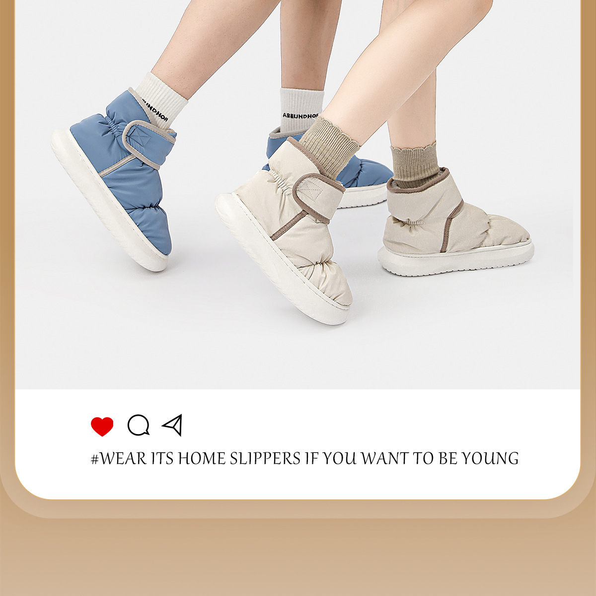 Zapatillas de algodón impermeables de invierno de las mujeres botas de nieve interior al aire libre casa felpa caliente confinamiento pareja zapatos de algodón hombres