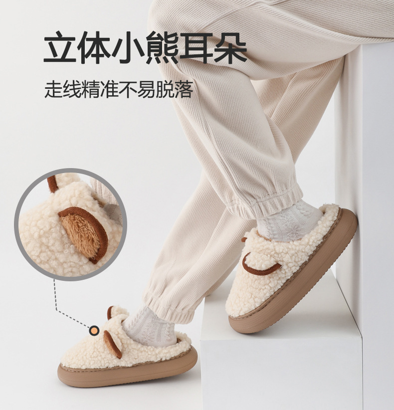 Venta al por mayor 2110 oso de peluche Zapatillas de algodón Otoño e Invierno de las mujeres lindas zapatos de confinamiento interior pareja casa antideslizante felpa