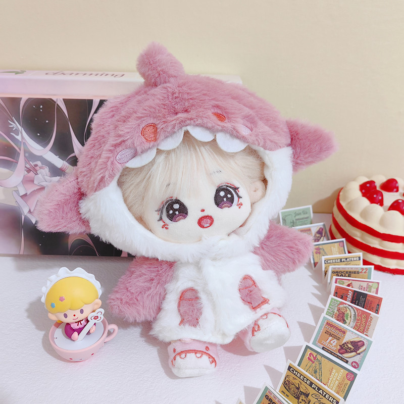 En stock al por mayor de tiburón con capucha 20cm algodón muñeca anime periférica muñeca ropa sin atributo cambio de ropa