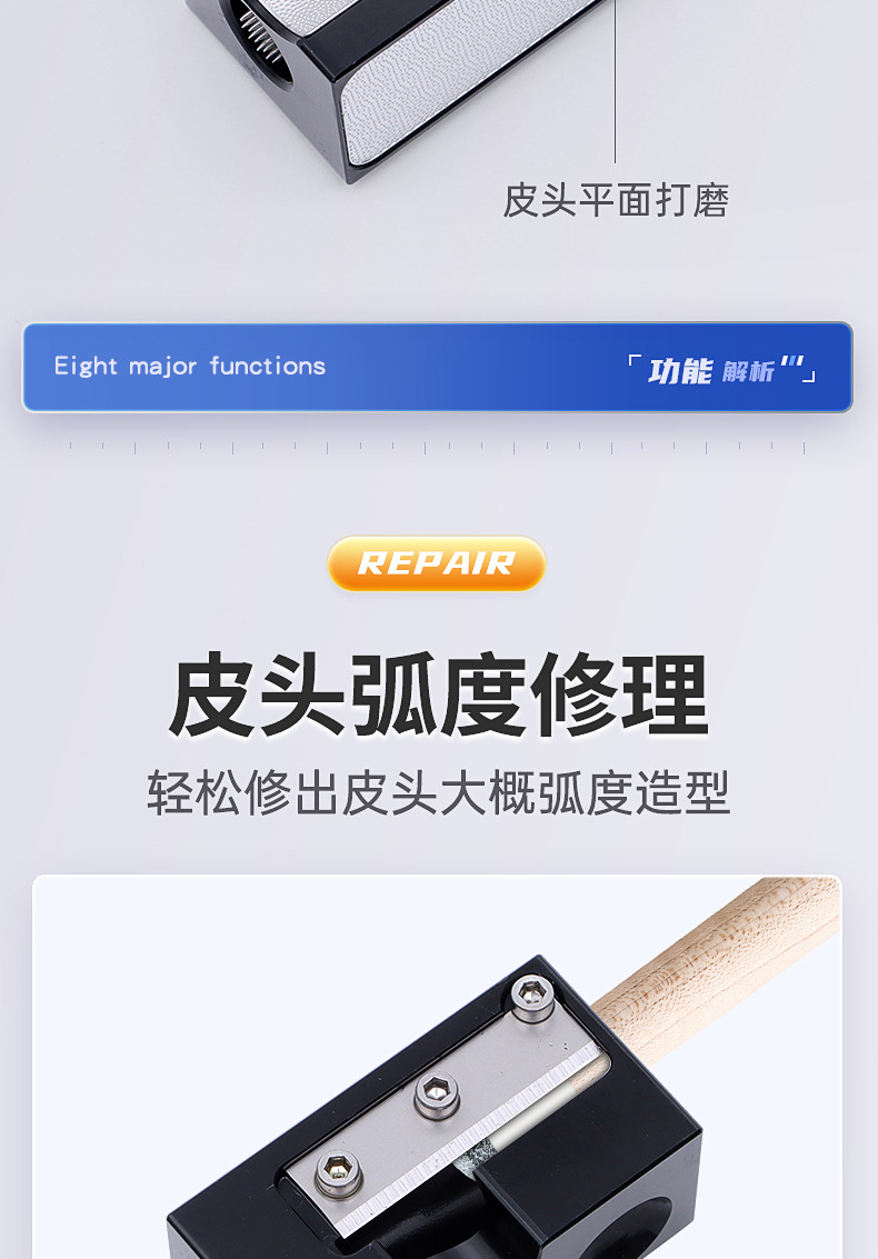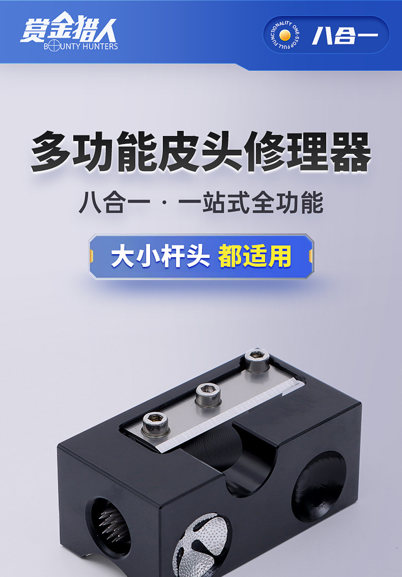 8-en-1 multifuncional varilla de billar Dispositivo de reparación de cabeza de cuero Dispositivo de reparación de varilla de billar herramienta de billar suministros Accesorios