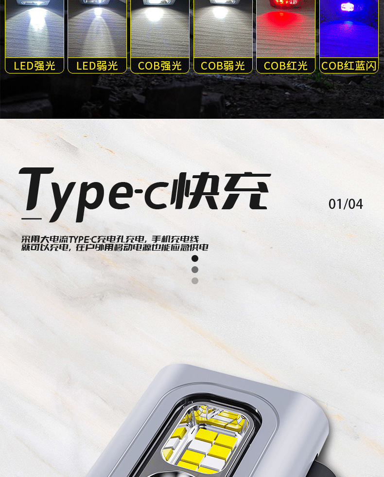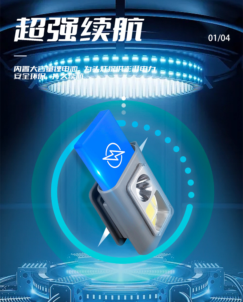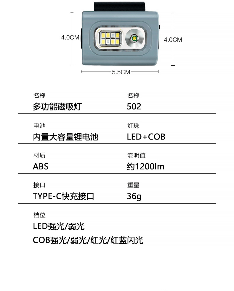 Luz de clip de ropa LED transfronteriza mini faro Luz de succión magnética impermeable luz de advertencia al aire libre faro rojo y azul intermitente Luz de marcha