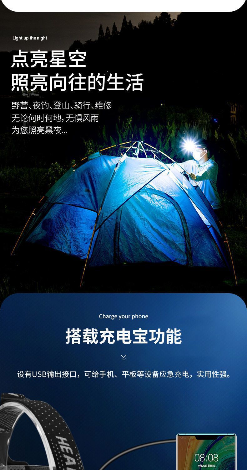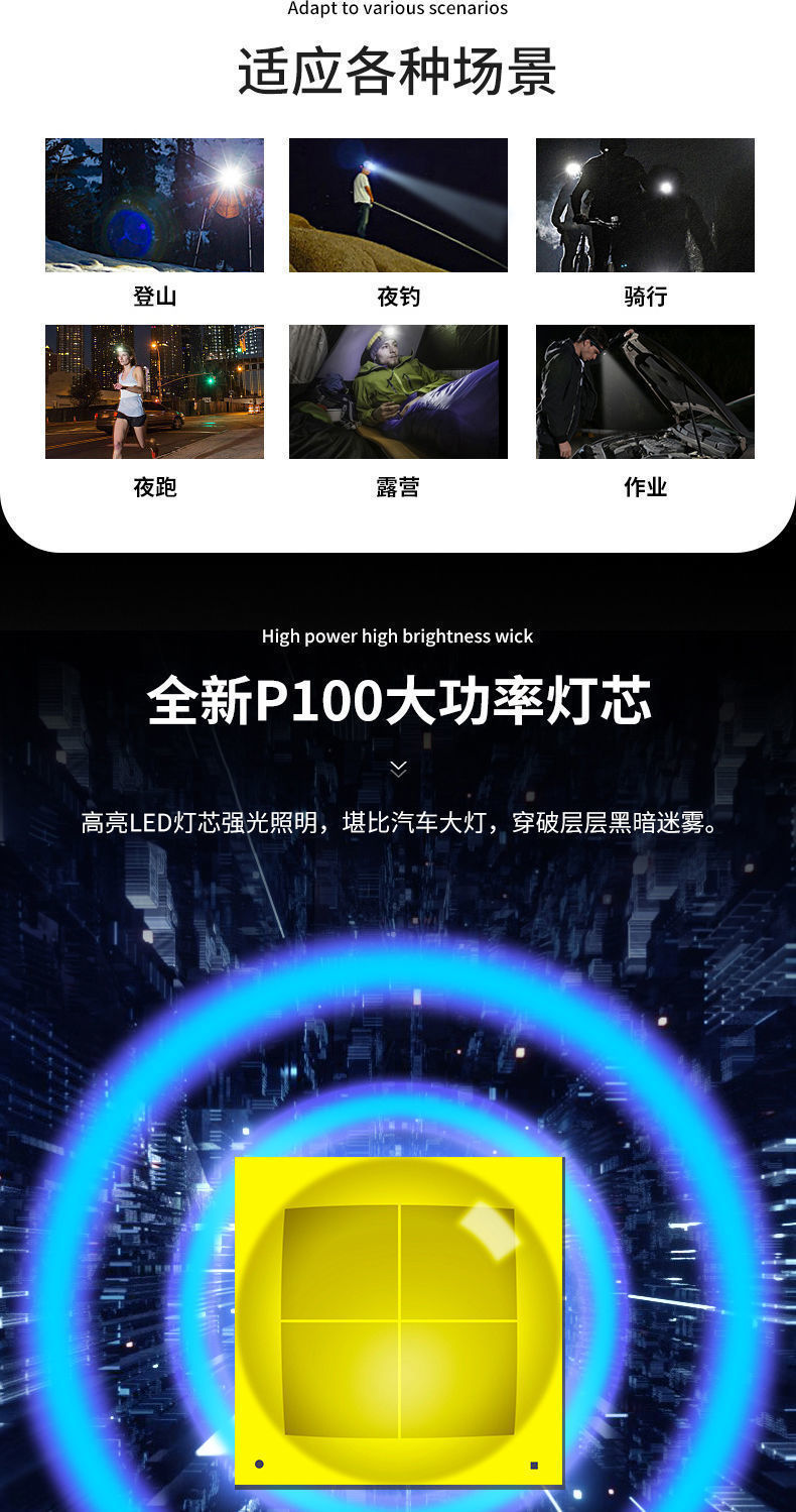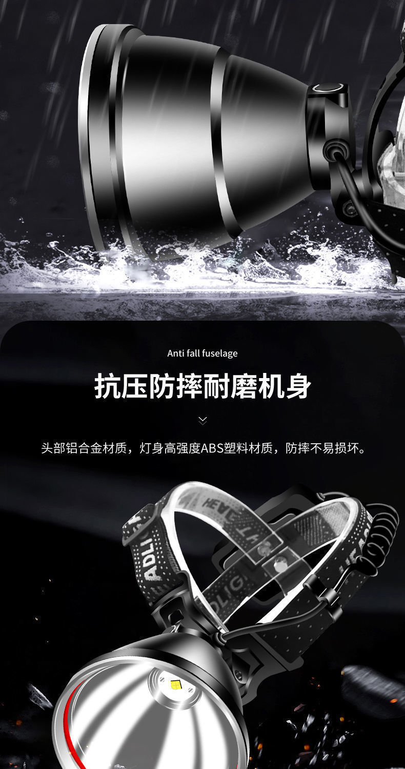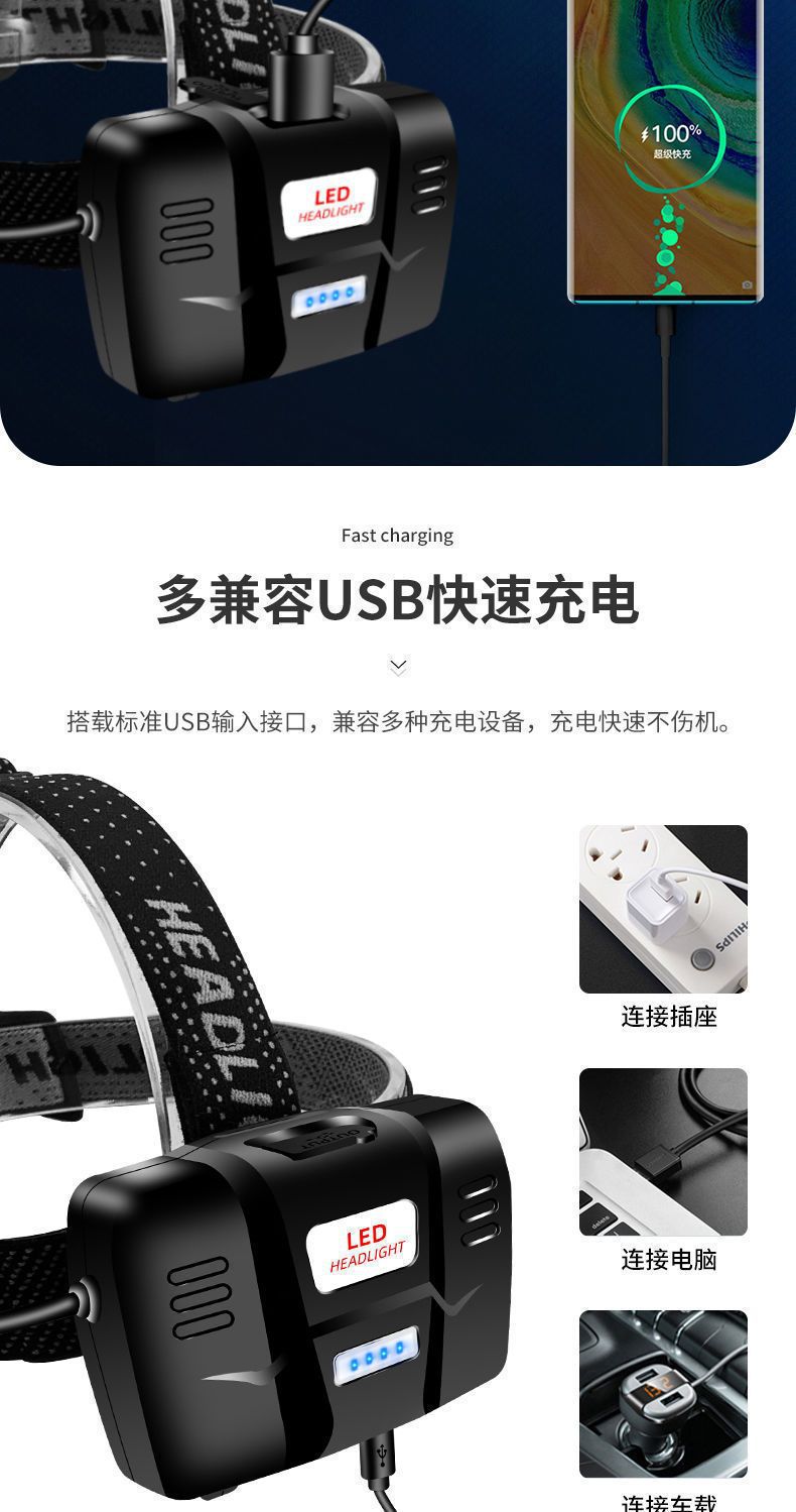 P100 Detección de luz al aire libre lámpara de minero luz blanca luz amarilla LED luz fuerte noche pesca faro alta potencia larga resistencia recargable teléfono móvil