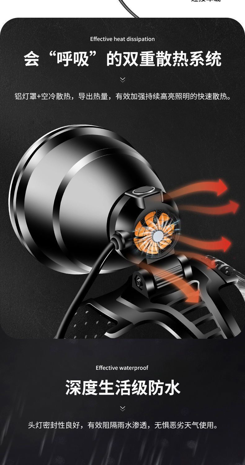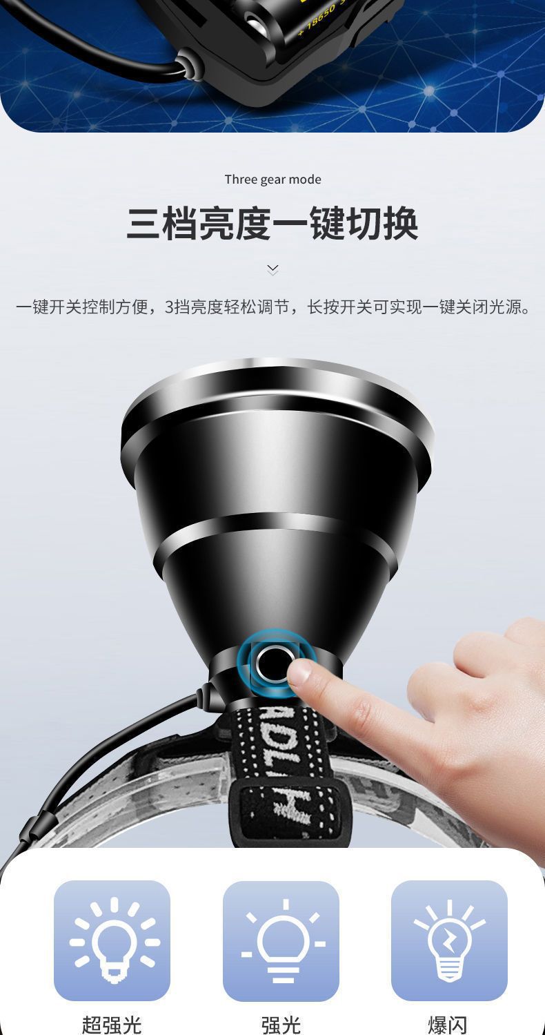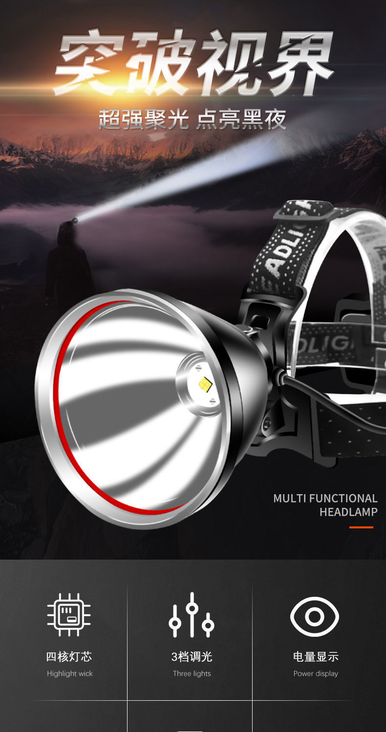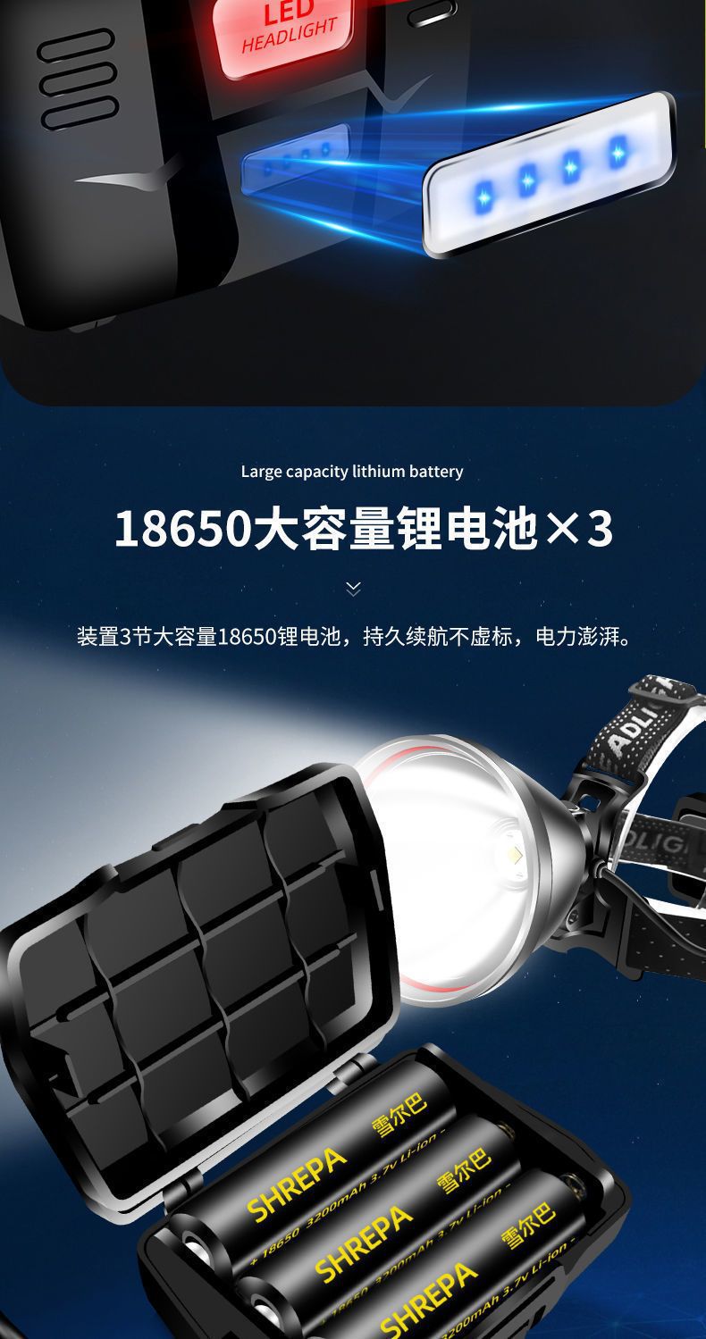 P100 Detección de luz al aire libre lámpara de minero luz blanca luz amarilla LED luz fuerte noche pesca faro alta potencia larga resistencia recargable teléfono móvil