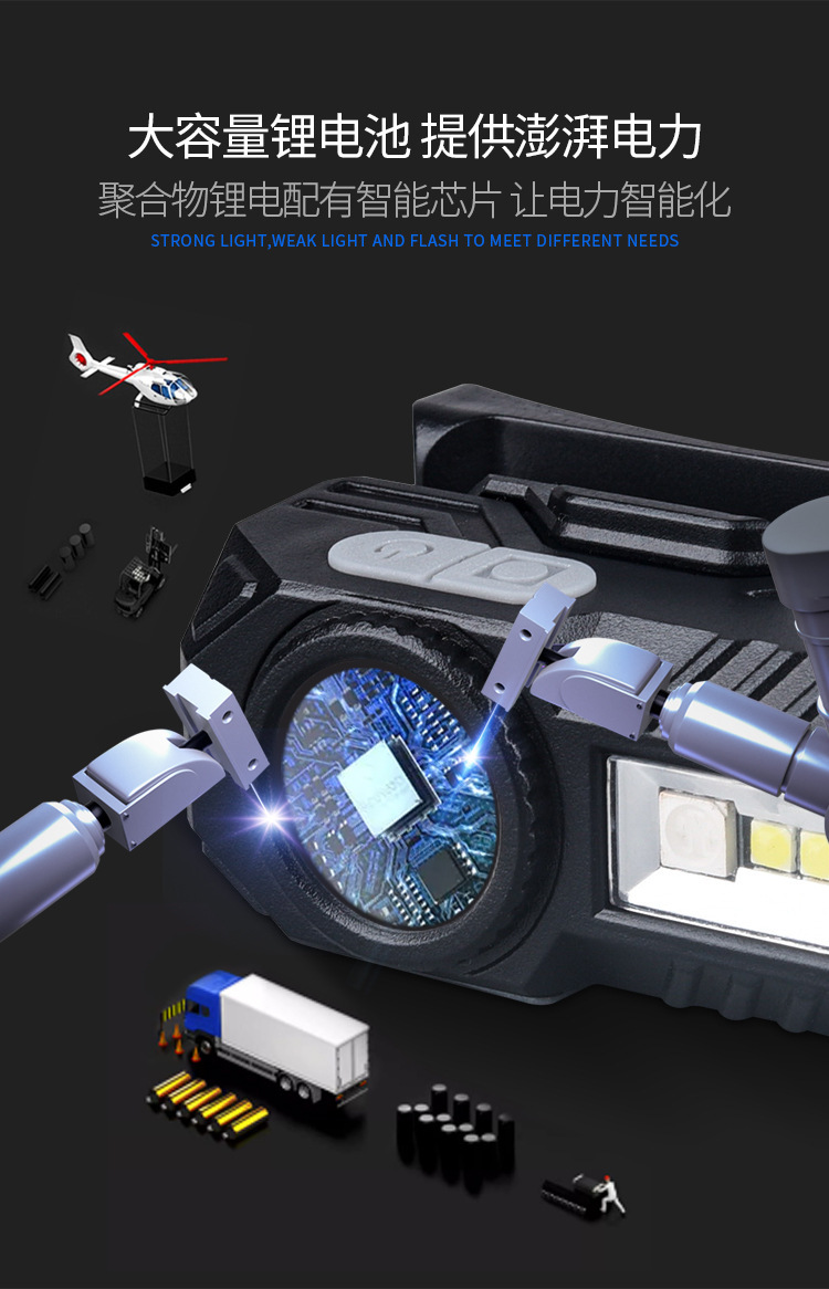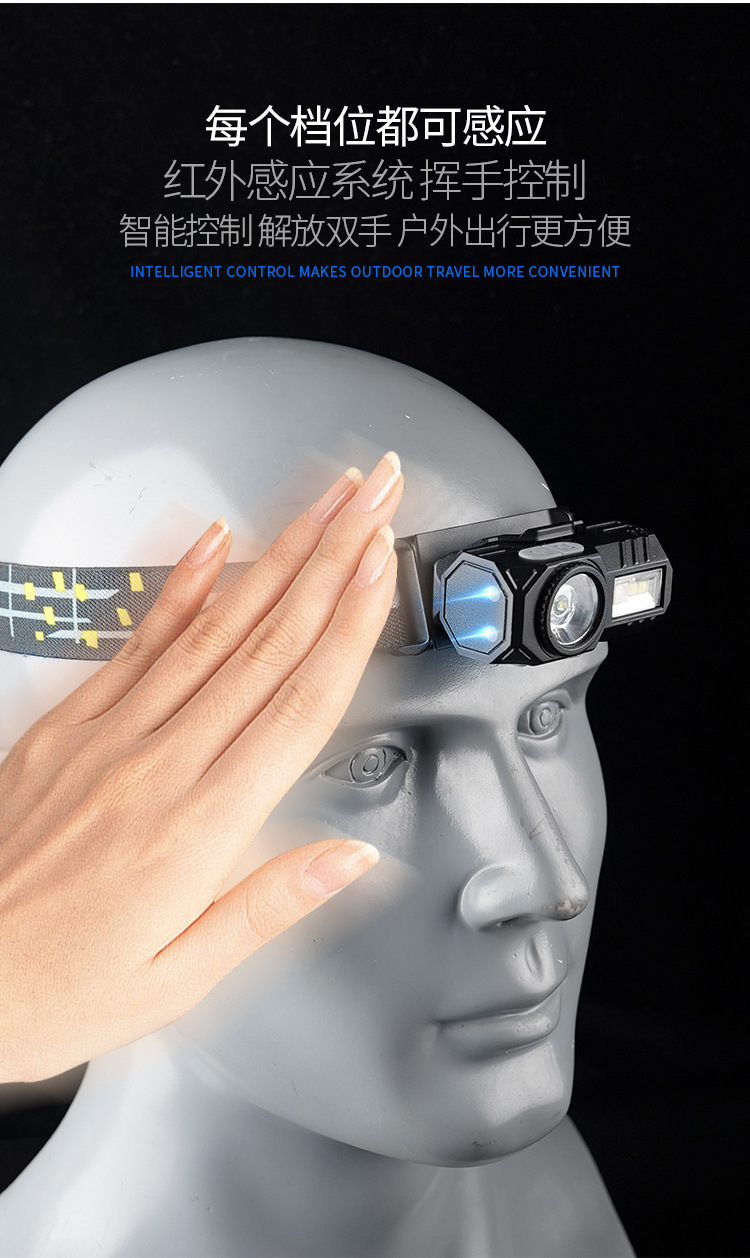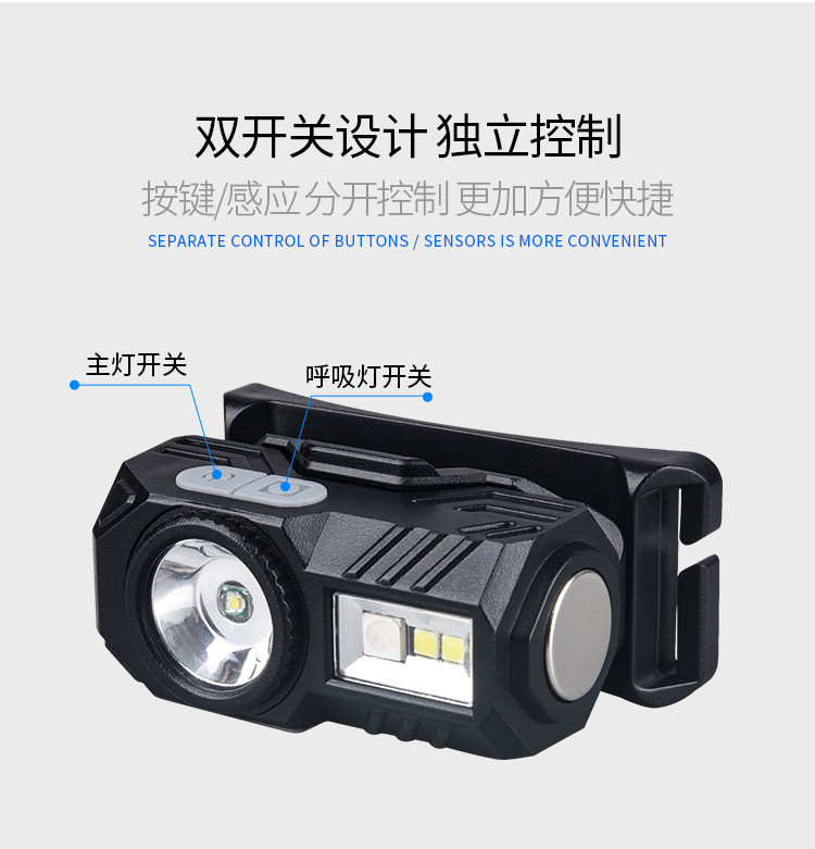 Transfronteriza nueva inducción clip de la tapa del faro de carga USB noche pesca headwear de doble uso corriendo ligero de cuatro luces LED faro