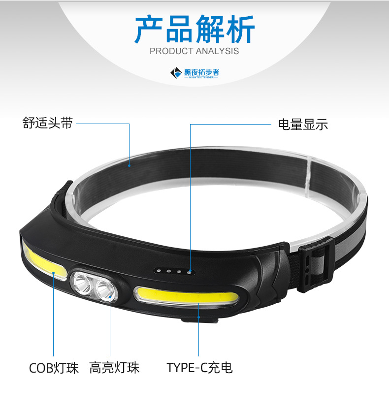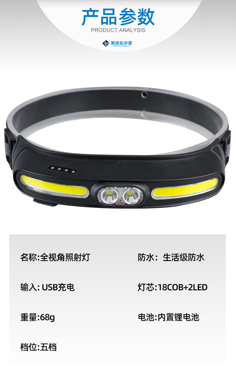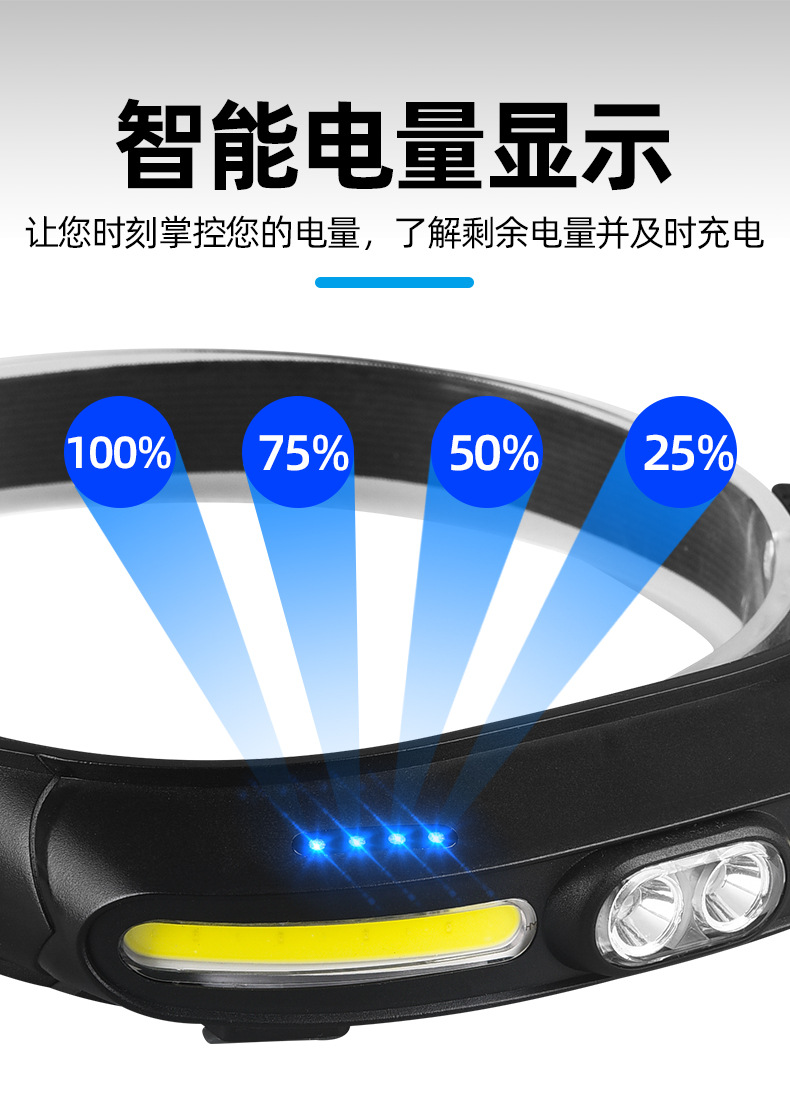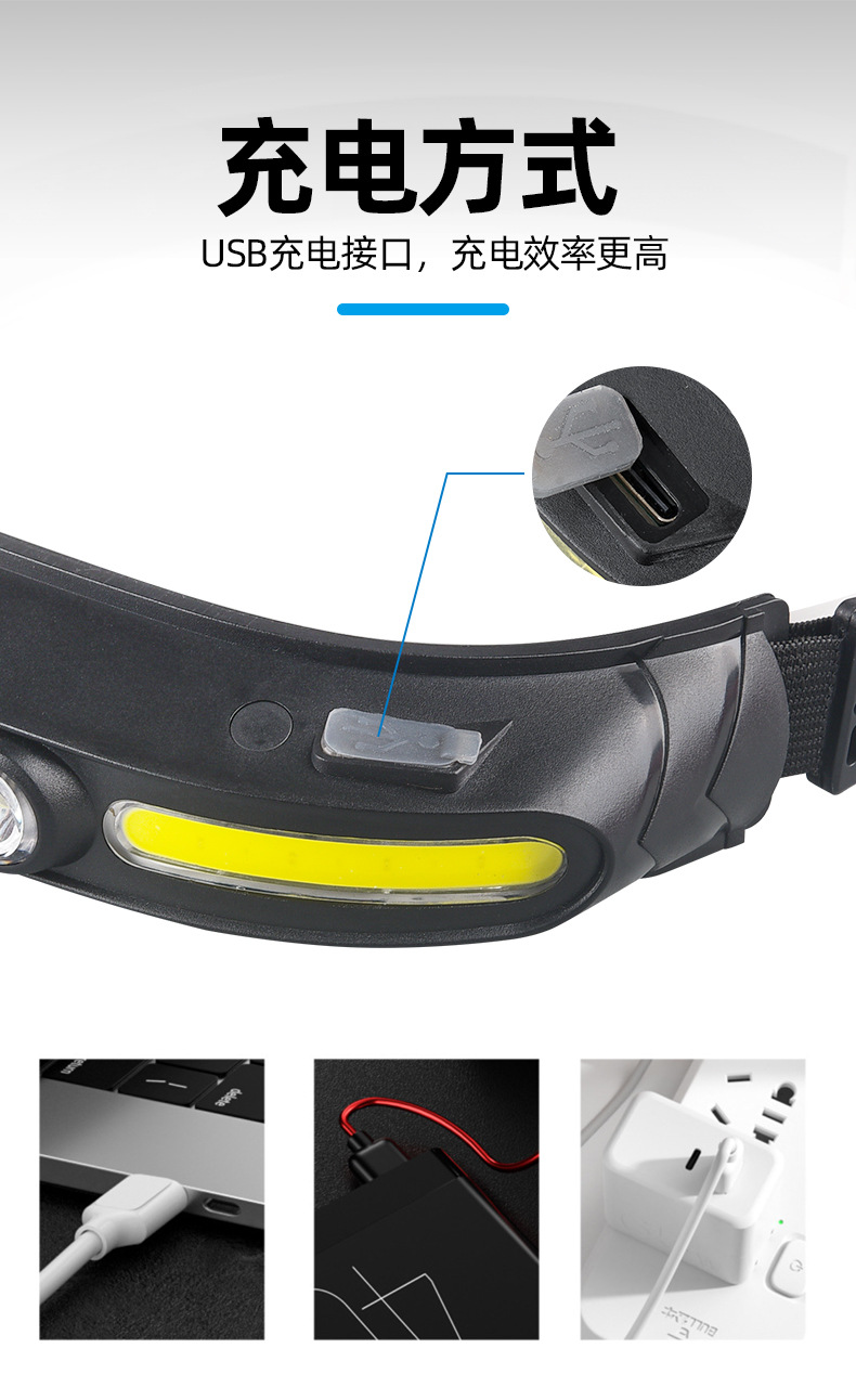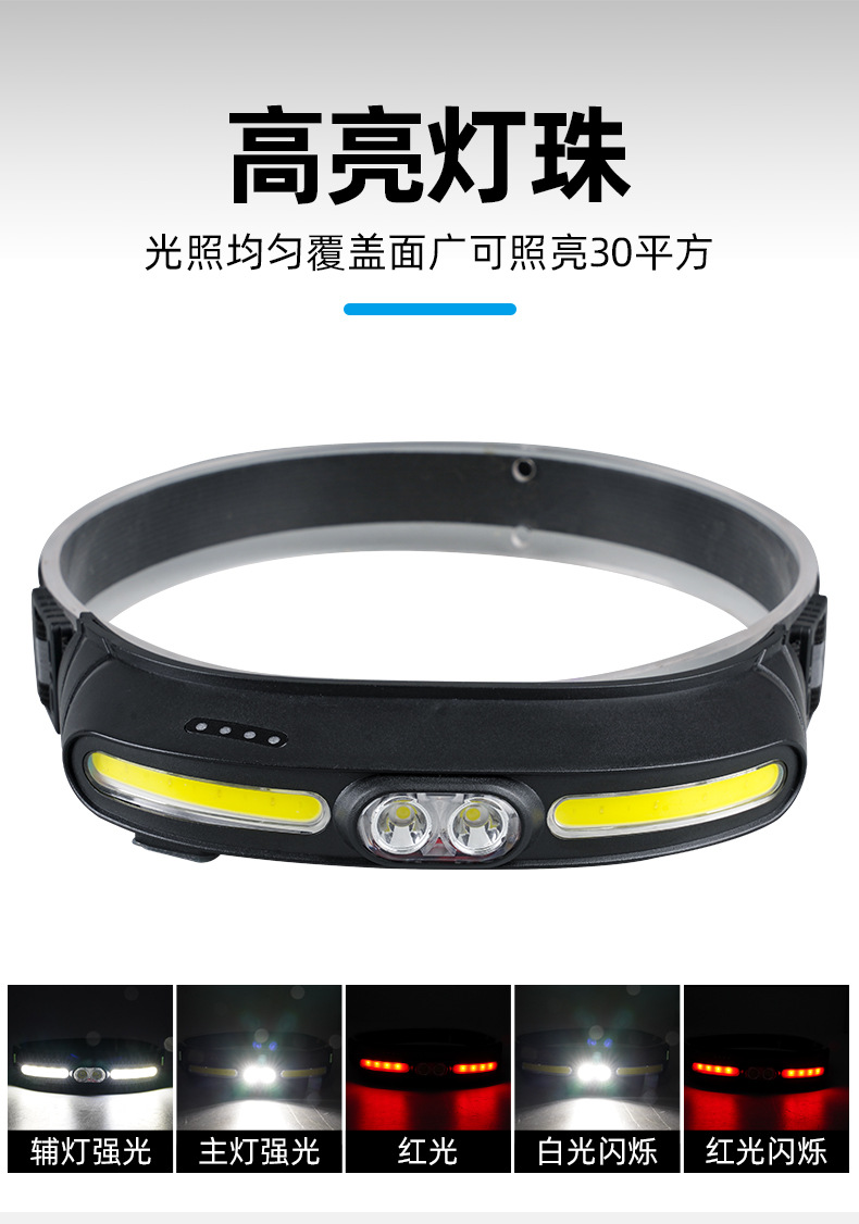 Transfronterizo nuevo multi-funcional COB reflector led faro al aire libre de largo alcance USB recargable portátil fuerte faro de luz