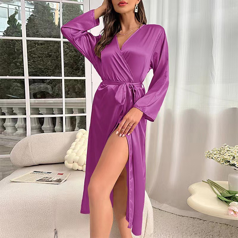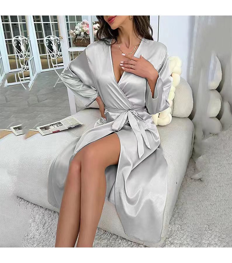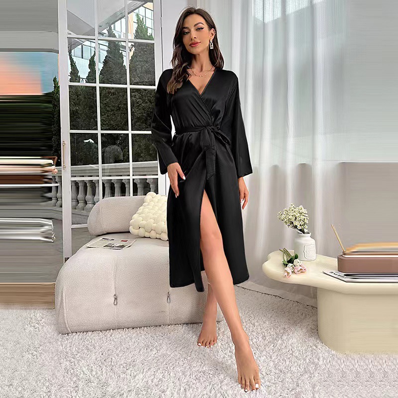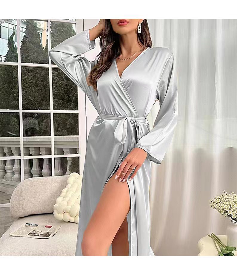 Amazon transfronteriza Venta caliente largo Albornoz de las mujeres sexy con cuello en V encaje-up camisón desgaste del hogar de comercio exterior