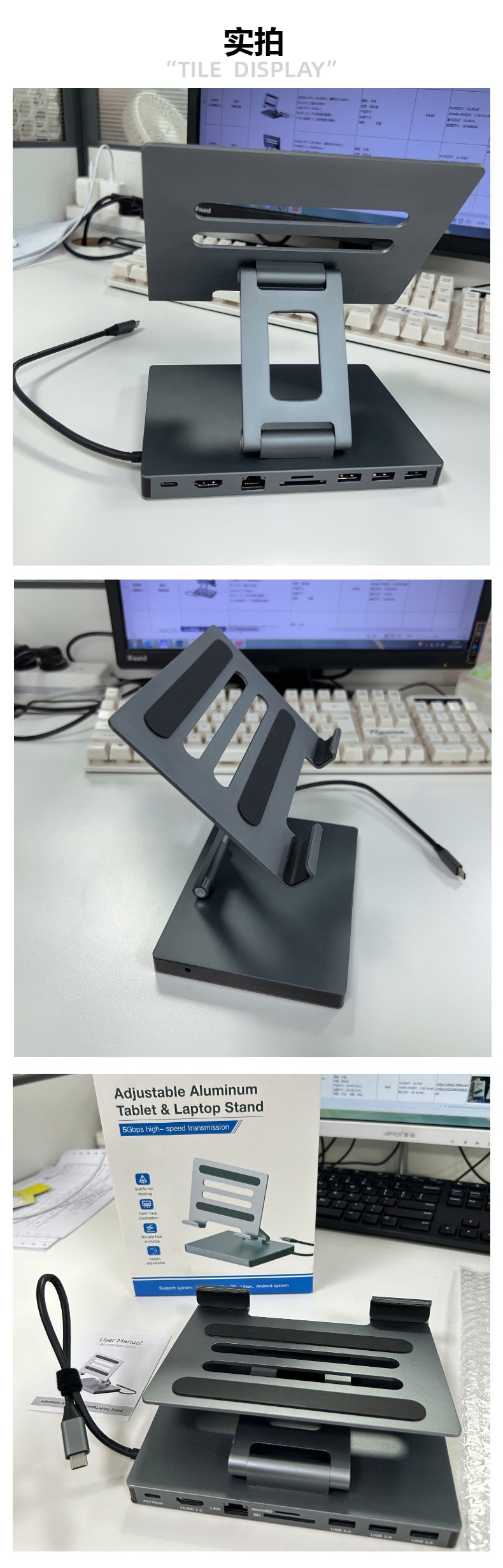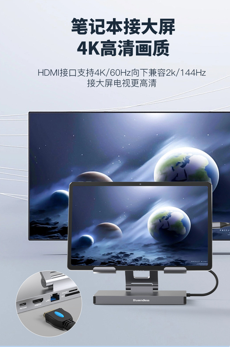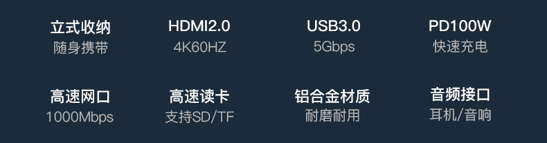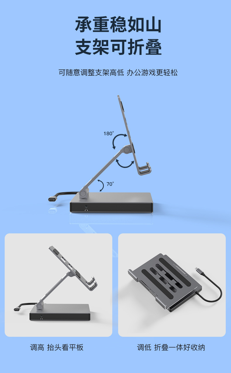 Aleación de aluminio de tipo C soporte de la estación de acoplamiento de la tableta portátil usbhub muelle de expansión HDMI2.0 puerto de red Gigabit
