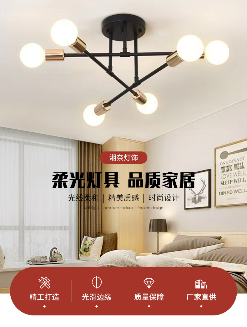 Transfronterizo Casa Nórdica pequeña araña de hierro personalidad creativa pequeña sala de estar lámpara de comedor lámpara de techo dormitorio simple