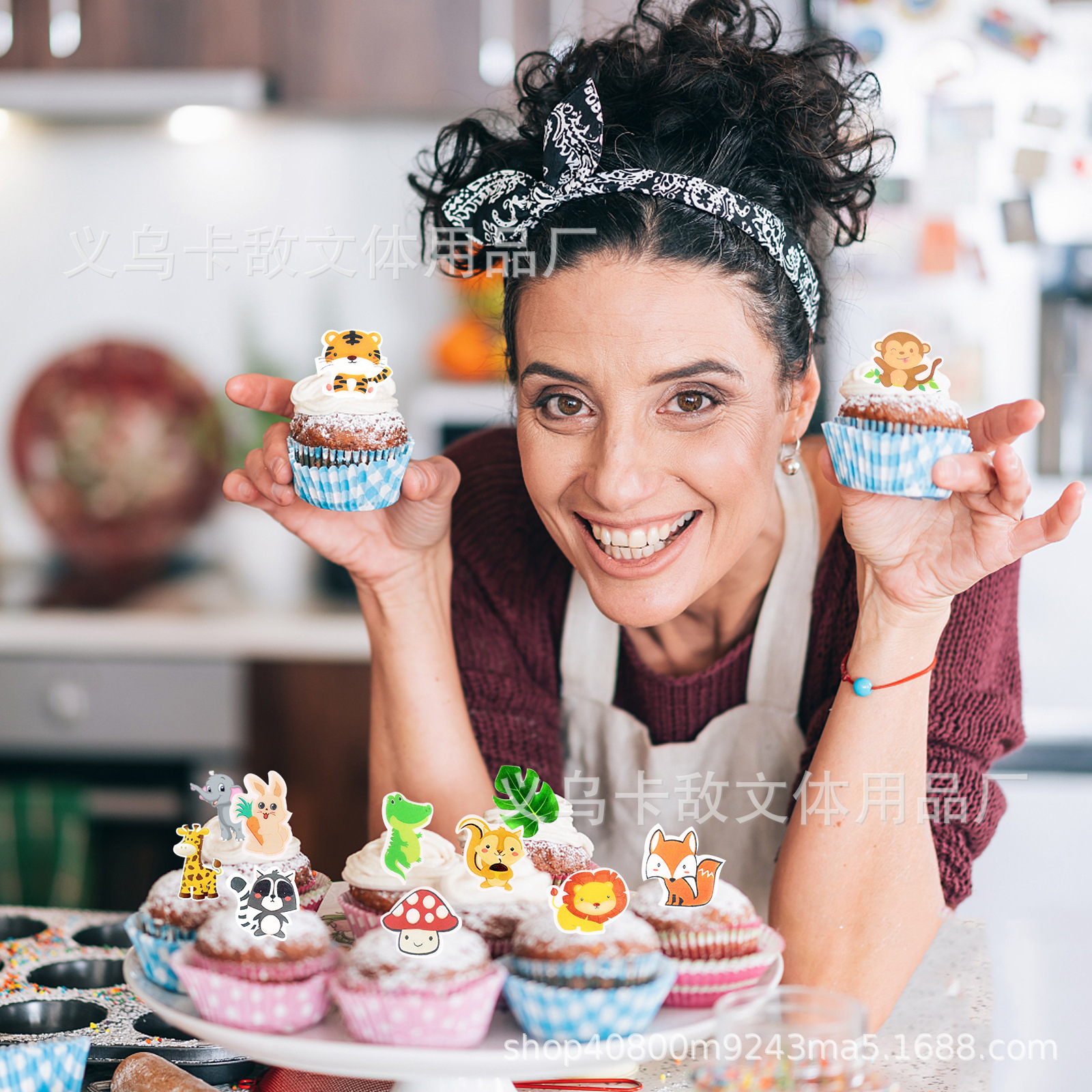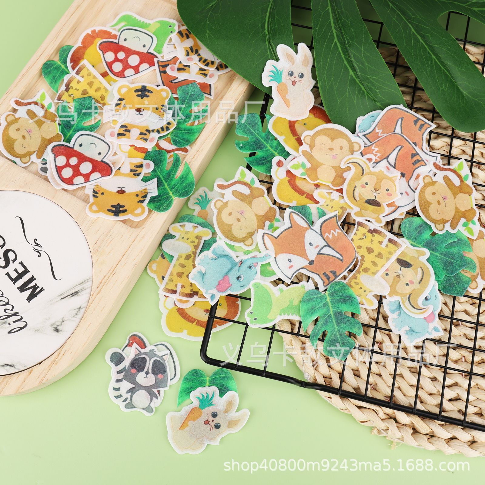 Especial transfronterizo para papel de arroz glutinoso creativo, tarjeta de decoración de animales forestales, decoración de platos fríos, papel de arroz glutinoso, decoración de pasteles de zoológico