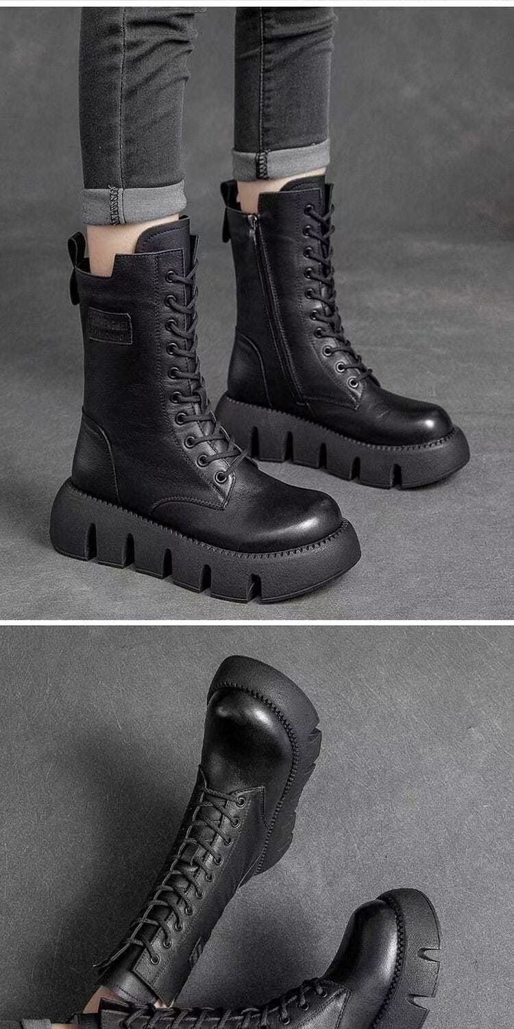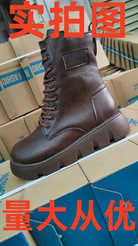 Comercio exterior transfronterizo 2023 Nuevas botas Martin forradas de lana de algodón grueso botas de media pantorrilla botas de nieve de fondo grueso botas individuales de mujer gruesas