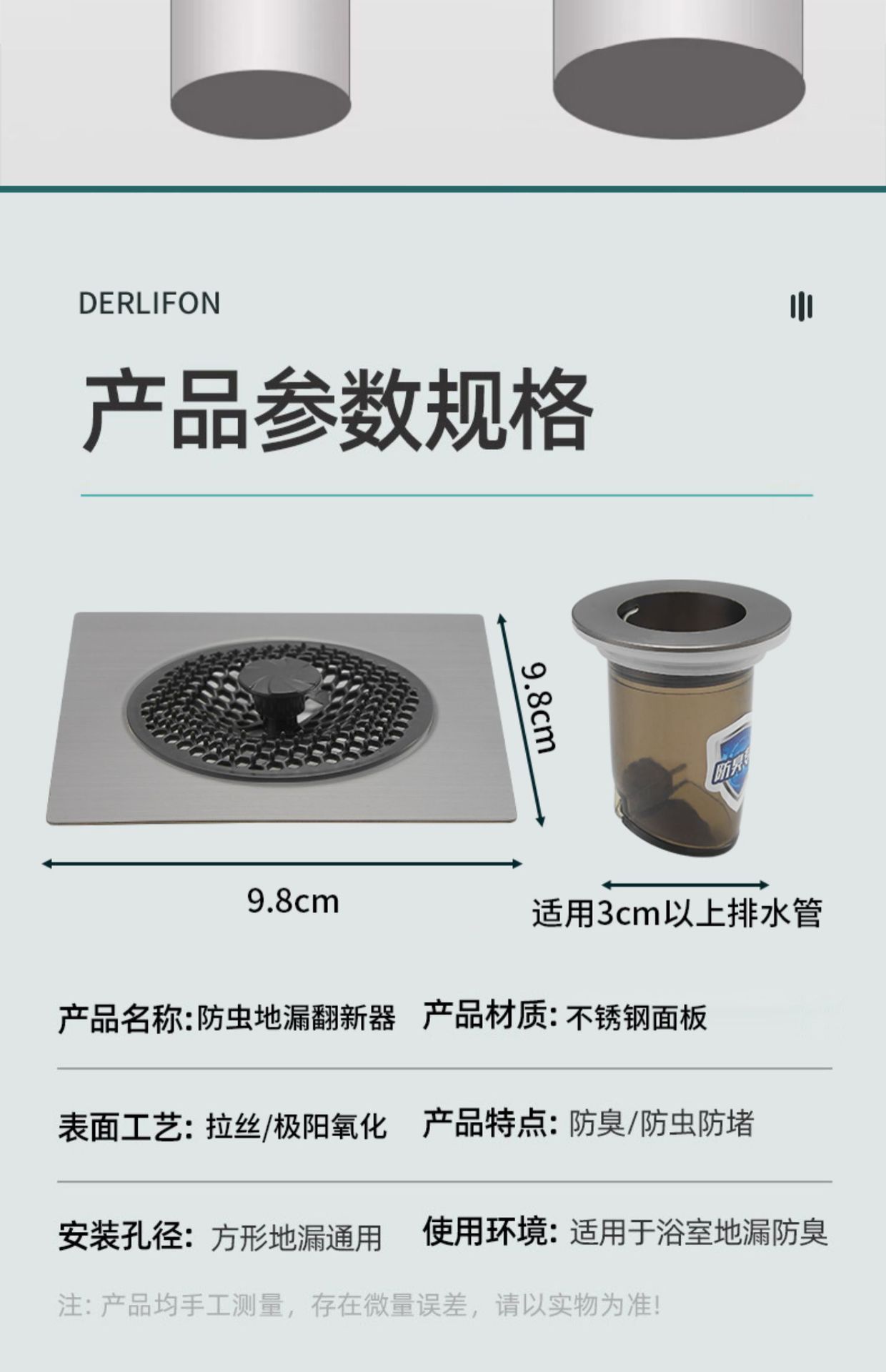 | Especificaciones | Desodorante floor drain retreater (one Pack),Retirador de drenaje de piso desodorante (paquete de dos),Filtro de pelo (5 paquetes) |